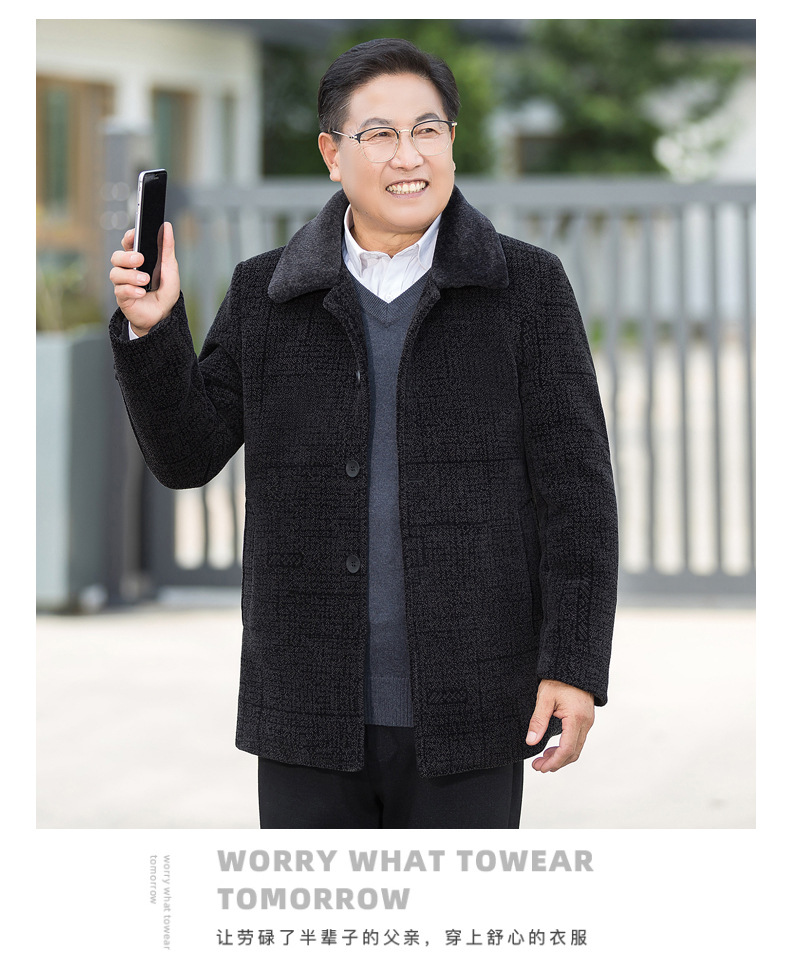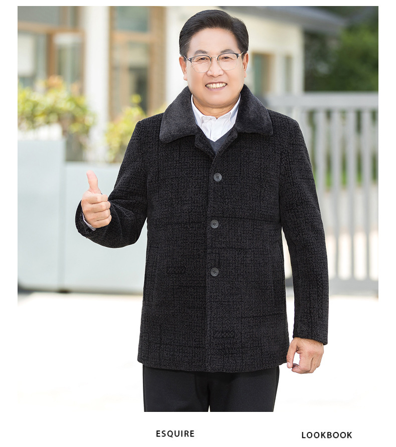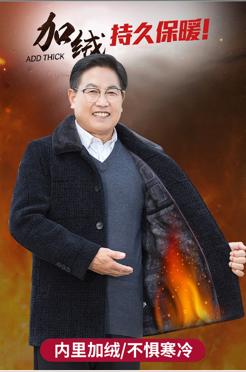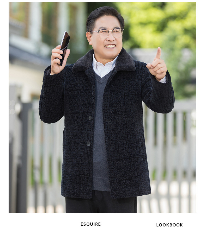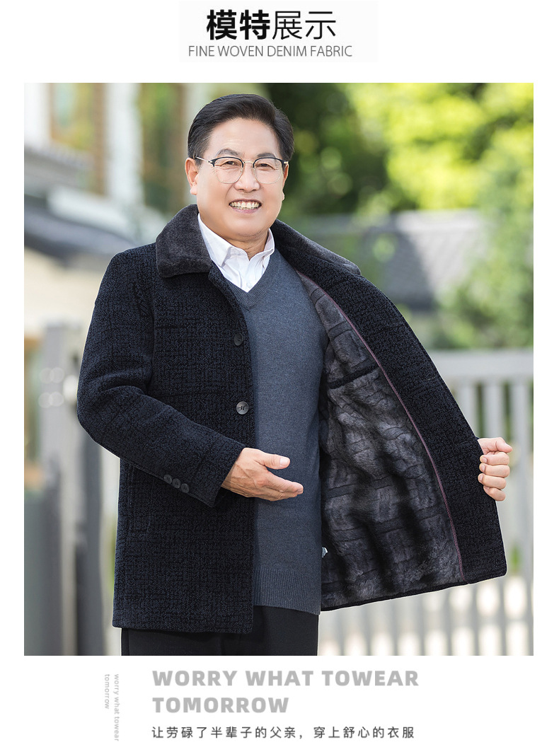 お父さんの冬の服は襟のオーバーの中で年配の毛です。上着の紳士服の外はベルベットを着て、おじいさんの冬のお年寄りを厚くします。