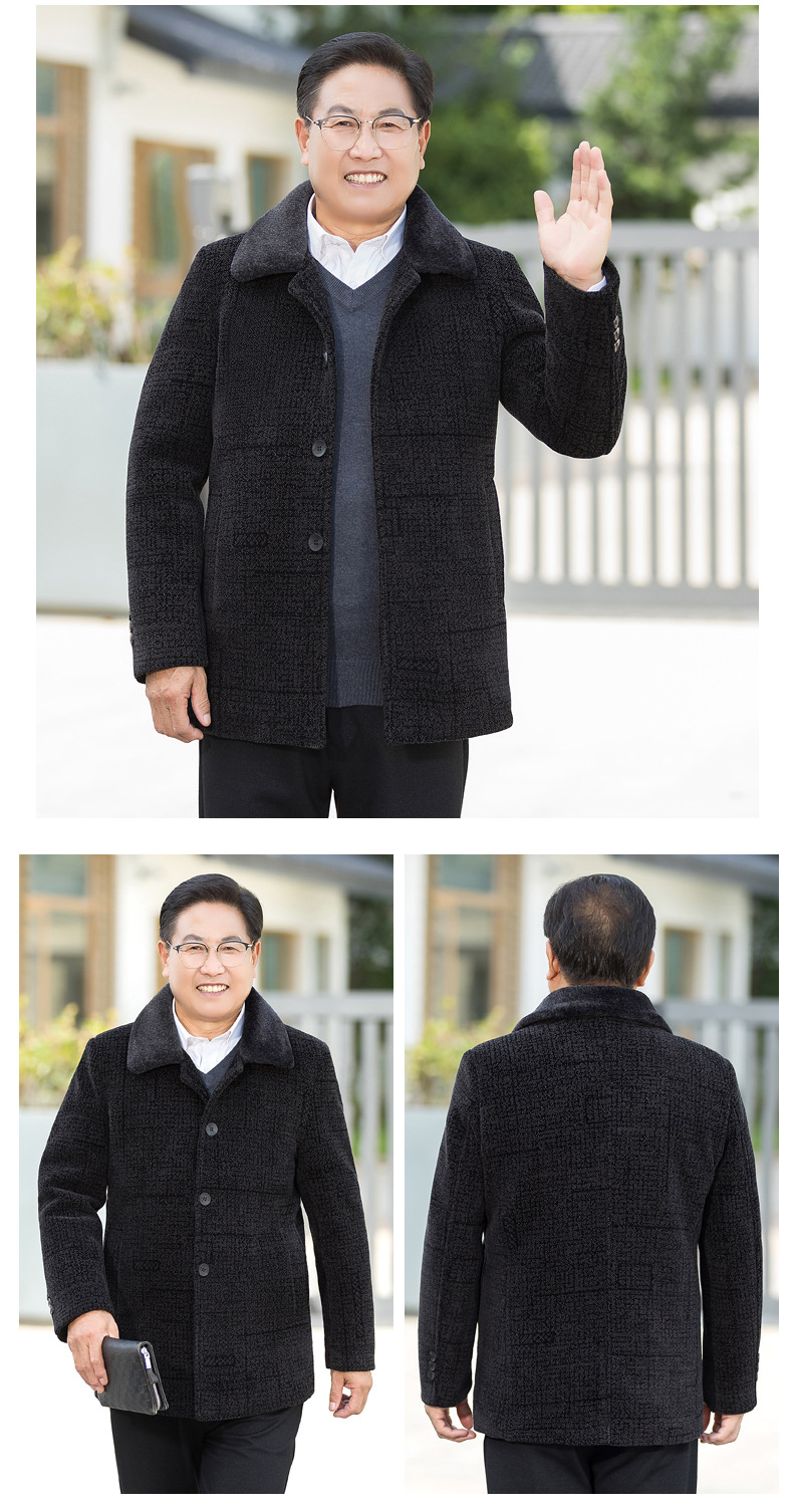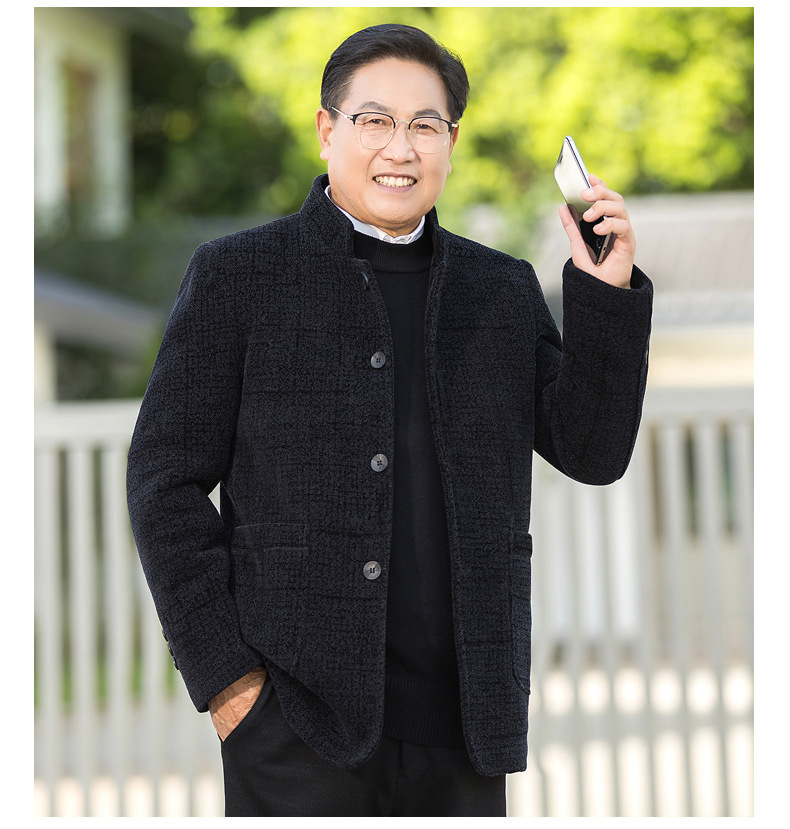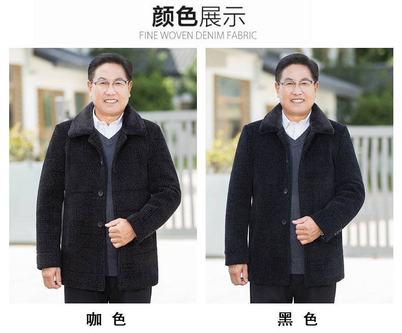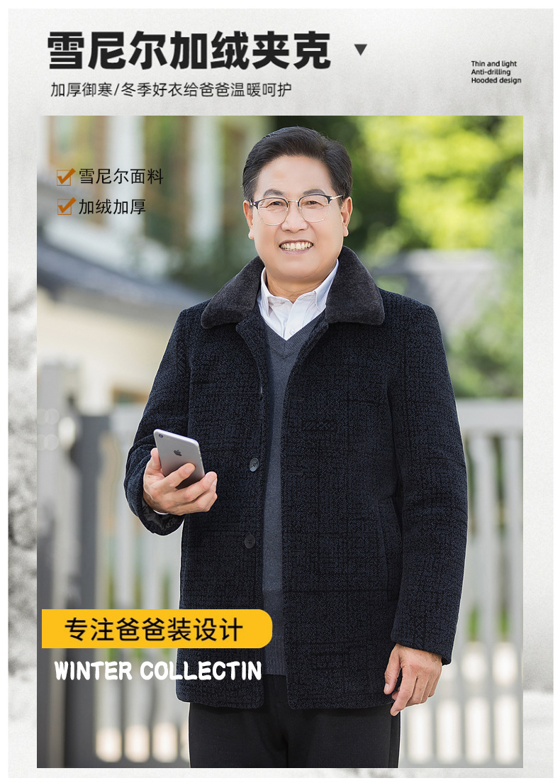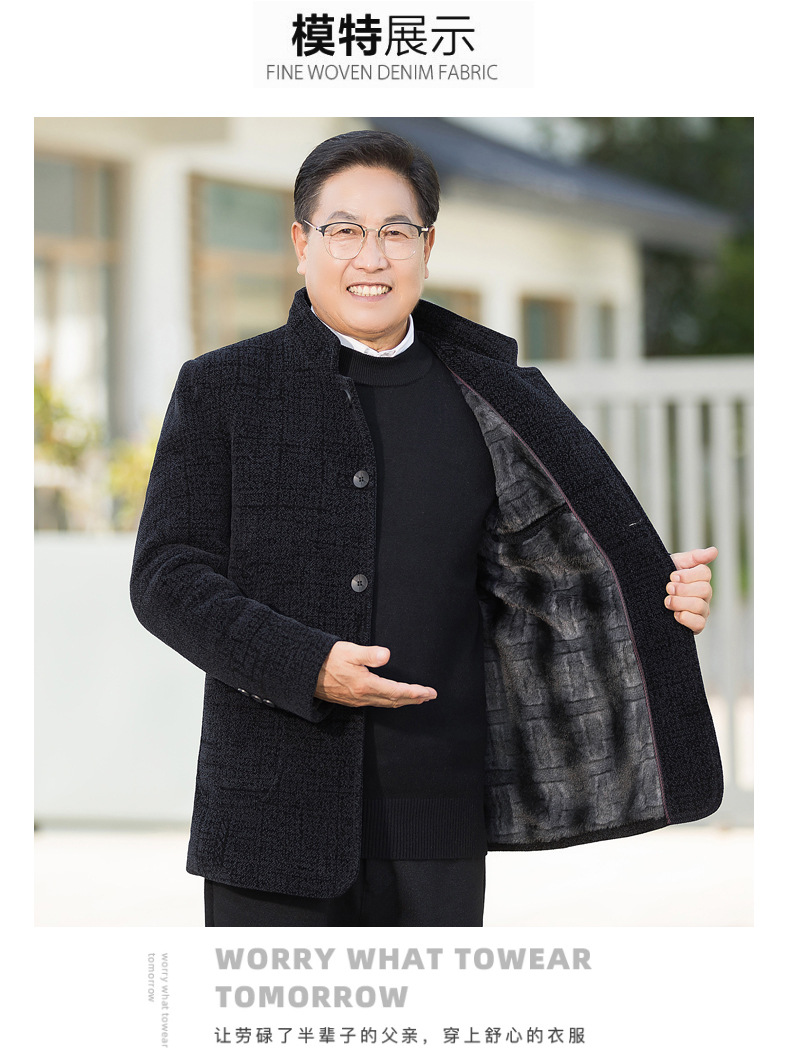 お父さんの冬の服は襟のオーバーの中で年配の毛です。上着の紳士服の外はベルベットを着て、おじいさんの冬のお年寄りを厚くします。