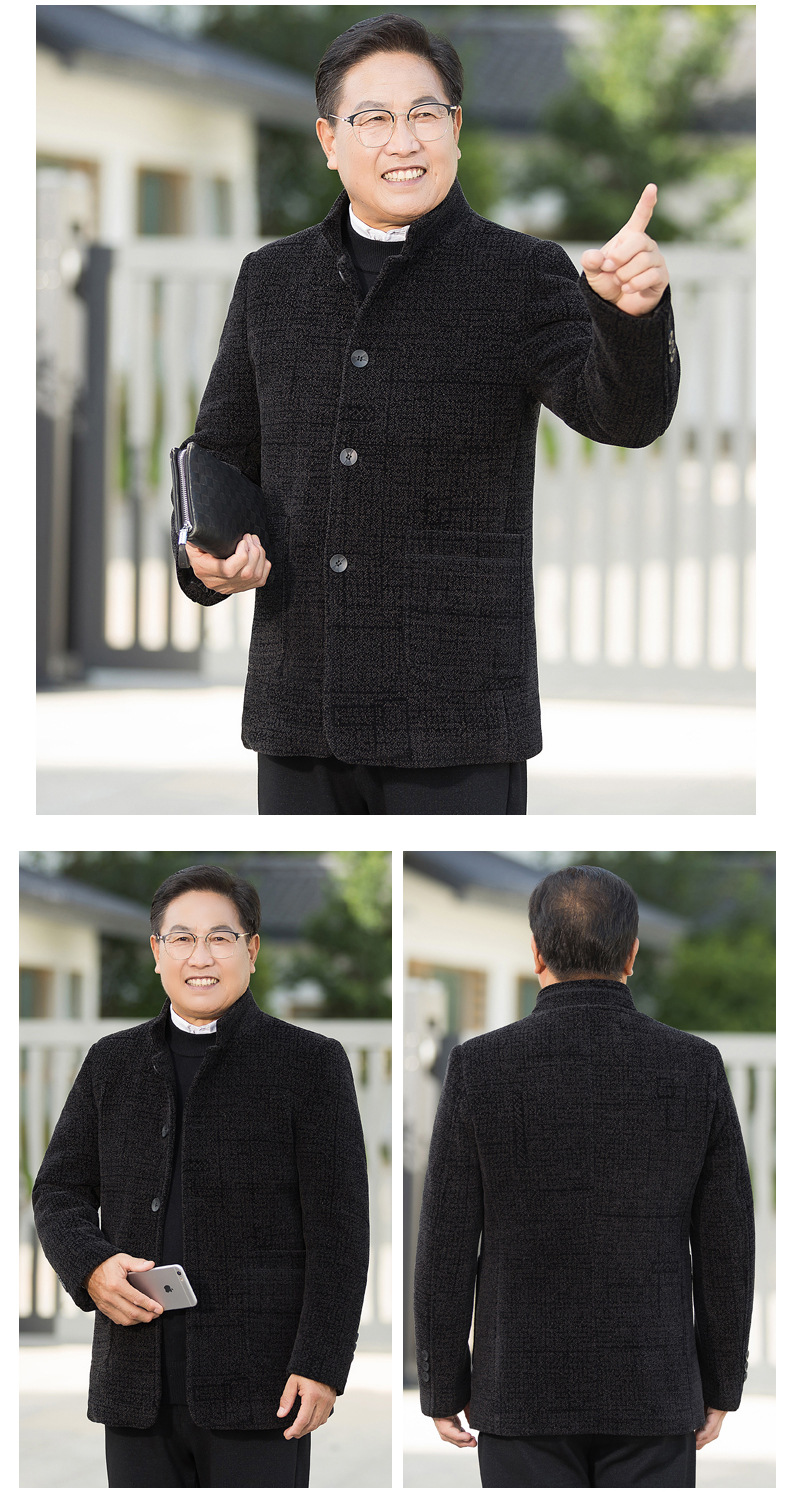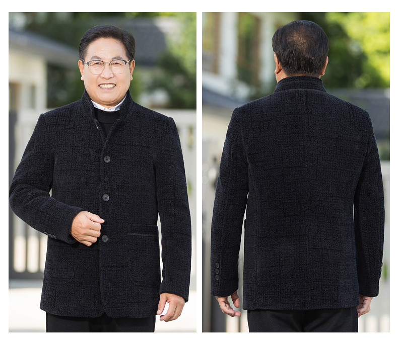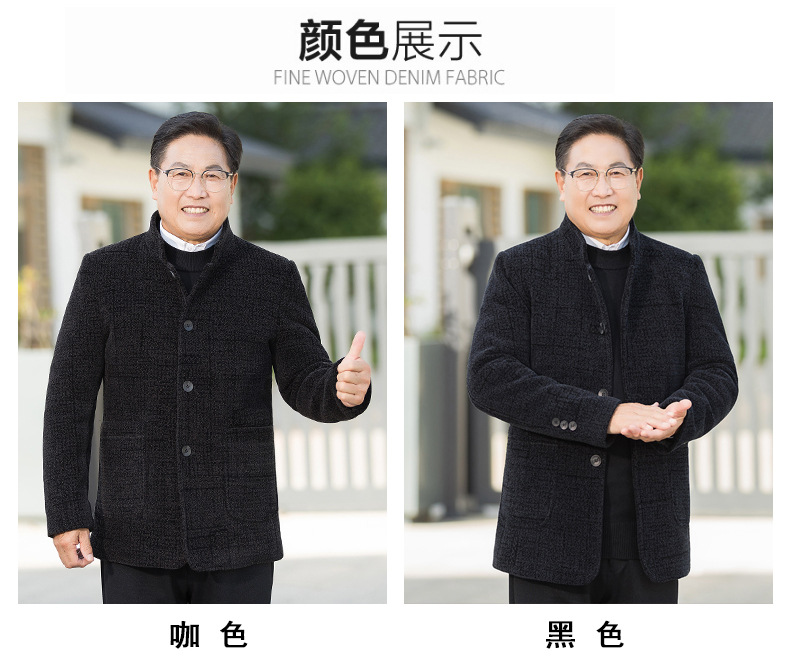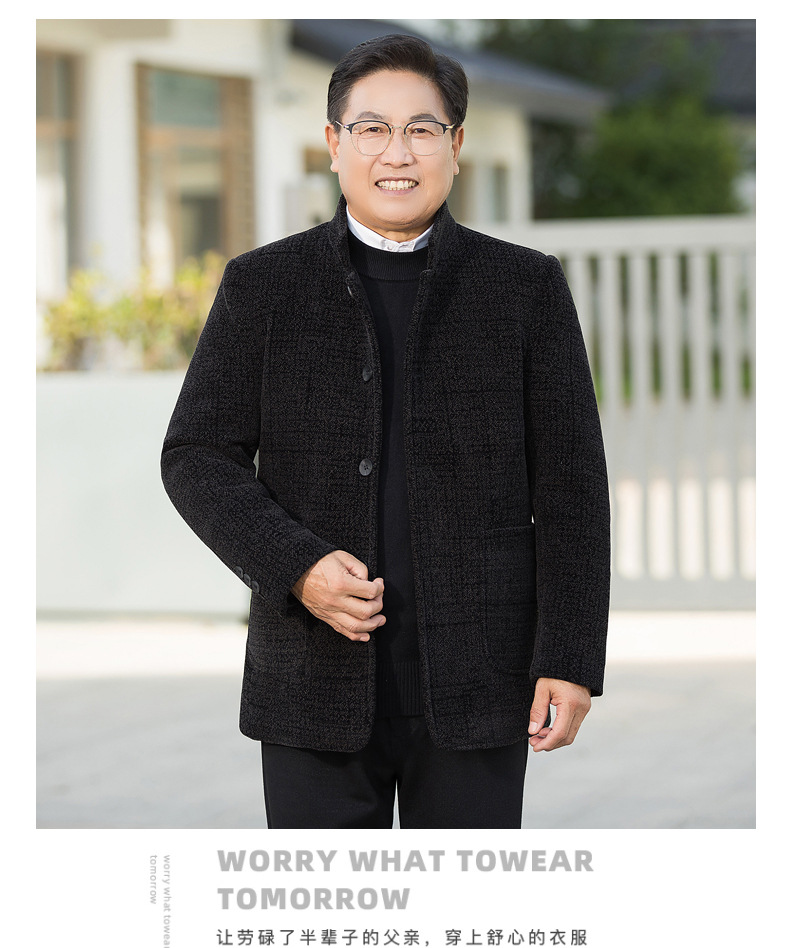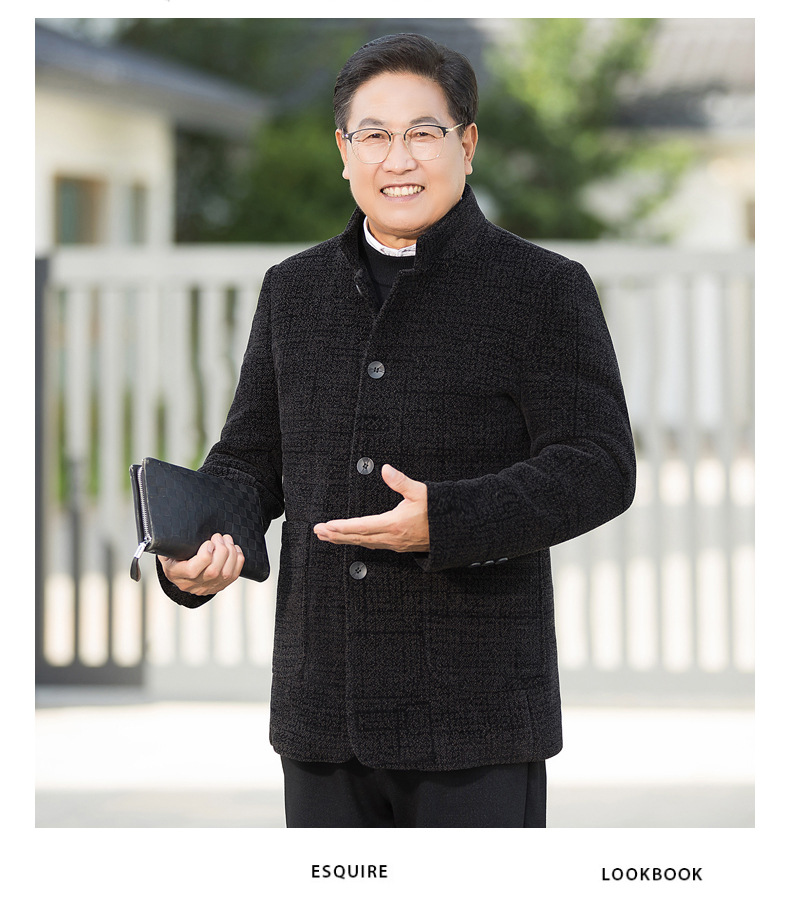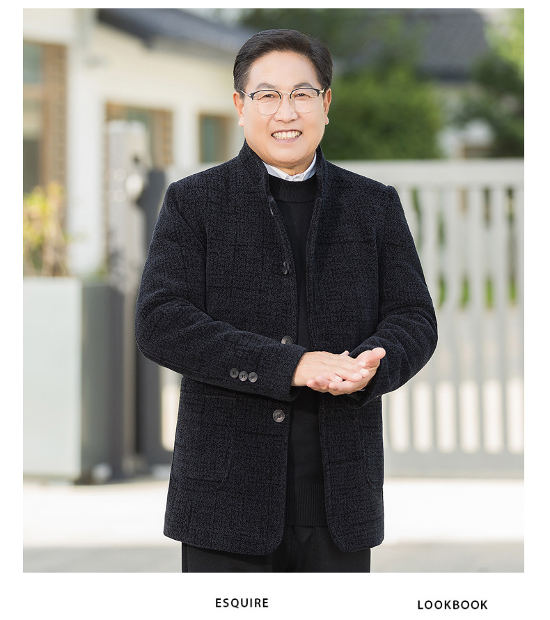 お父さんの冬の服は襟のオーバーの中で年配の毛です。上着の紳士服の外はベルベットを着て、おじいさんの冬のお年寄りを厚くします。