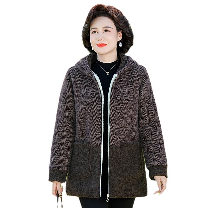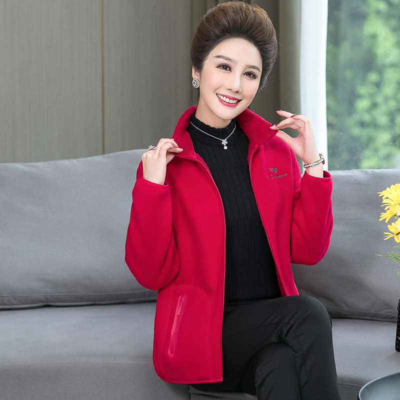 中年のお母さんの新型のフリースのパーカーの冬の中高年の婦人服のベルベットの厚い立襟の長袖の保温のコート