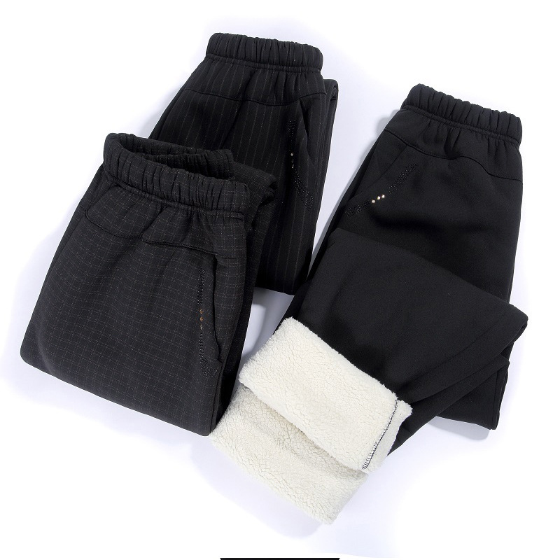 中高年の子羊の毛のズボンの大きいサイズのズボンのカジュアルなおばあさんのゴムは腰の高いお母さんのまっすぐな筒の厚い冬のズボンを持ちます。