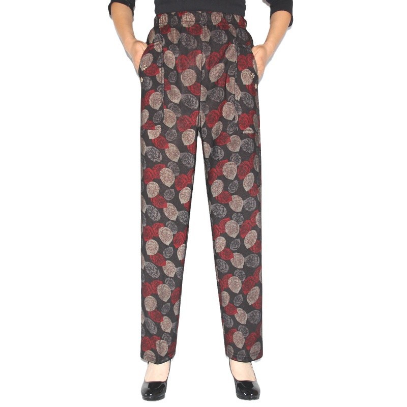 老人のズボンの冬のベルベットの中高年のズボンのまっすぐな筒は腰のお母さんのズボンのおばあさんのズボンのおばあさんの花のズボンを緩めます。