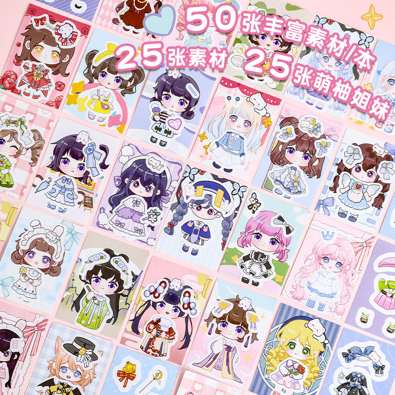 萌え柚姉妹ステッカー本漫画学生趣味知育玩具手帳装飾素材着せ替えステッカー本卸売り