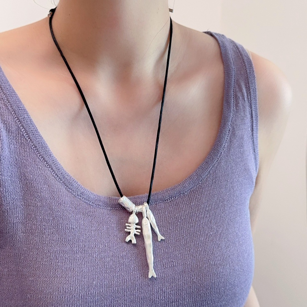 秋冬小鱼皮绳长款项链女时尚气质高级感通勤鱼骨吊坠毛衣链配饰品