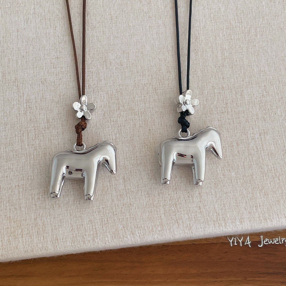 韩系ins银色小马吊坠项链女高级感小众长款毛衣链日常百搭配饰品