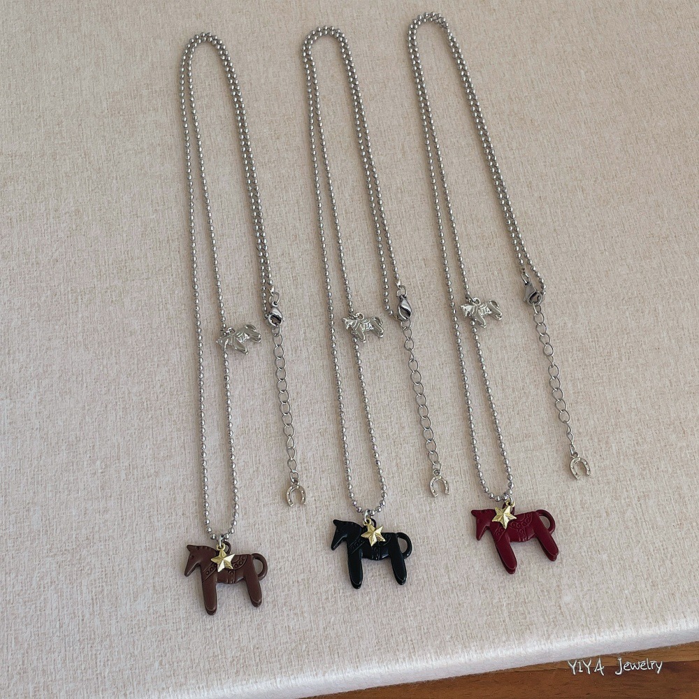 韩系滴釉小马吊坠项链女高级感气质百搭颈链小众设计锁骨链配饰品