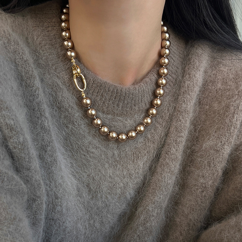 美ラード系のシャンパン色の真珠のネックレスの女性の軽豪華なレトロで優雅で高級感のある雰囲気に合わせて首のチェーンのセーターのチェーンを合わせます。