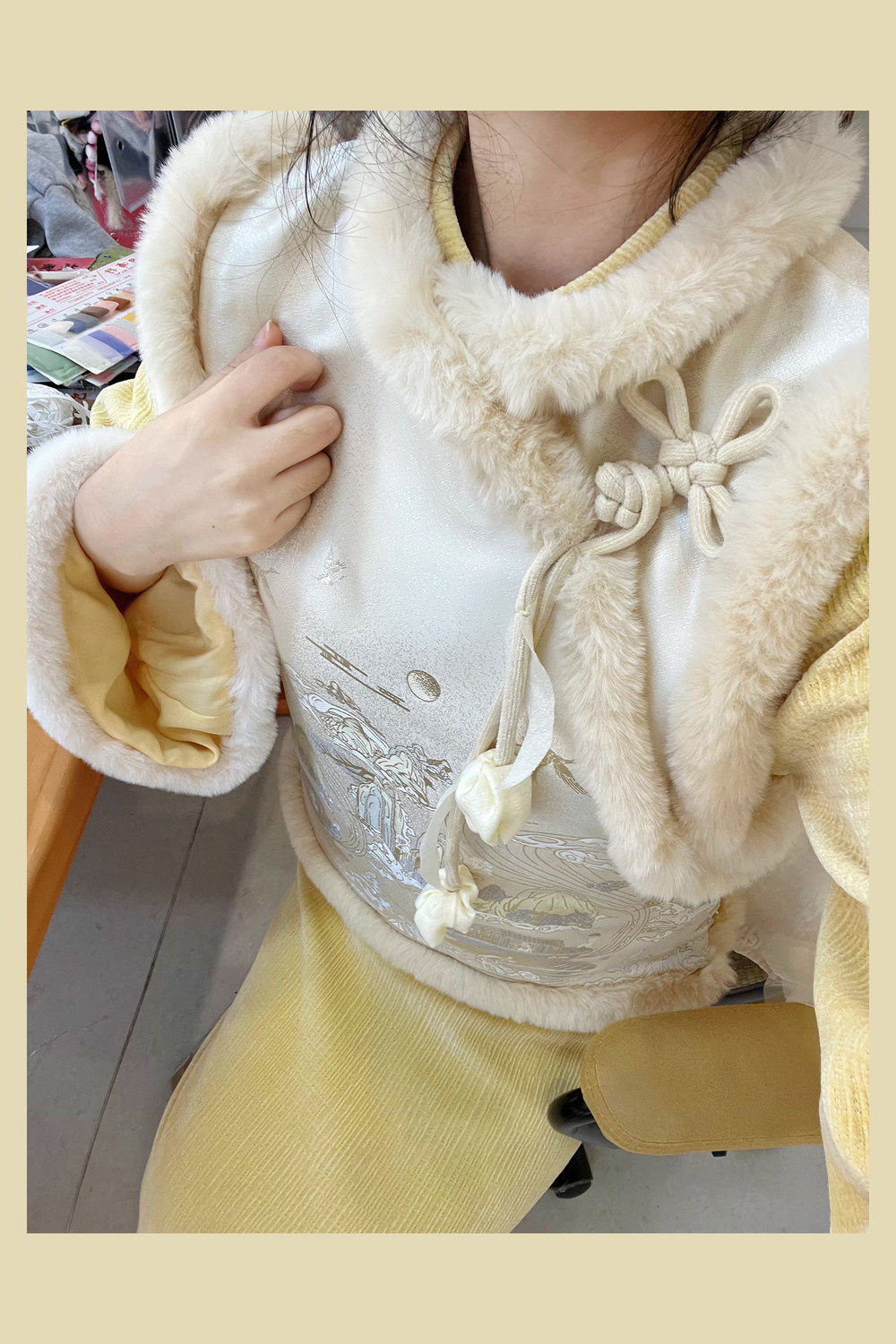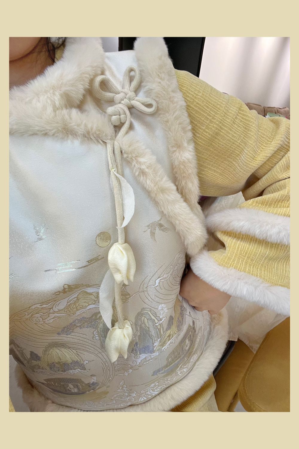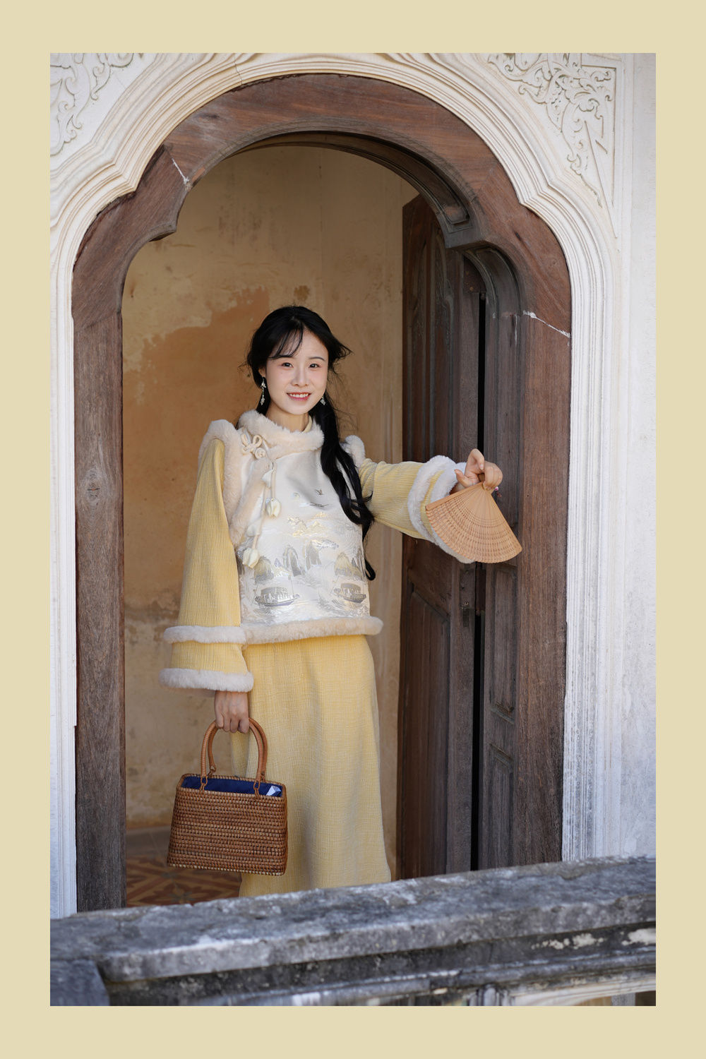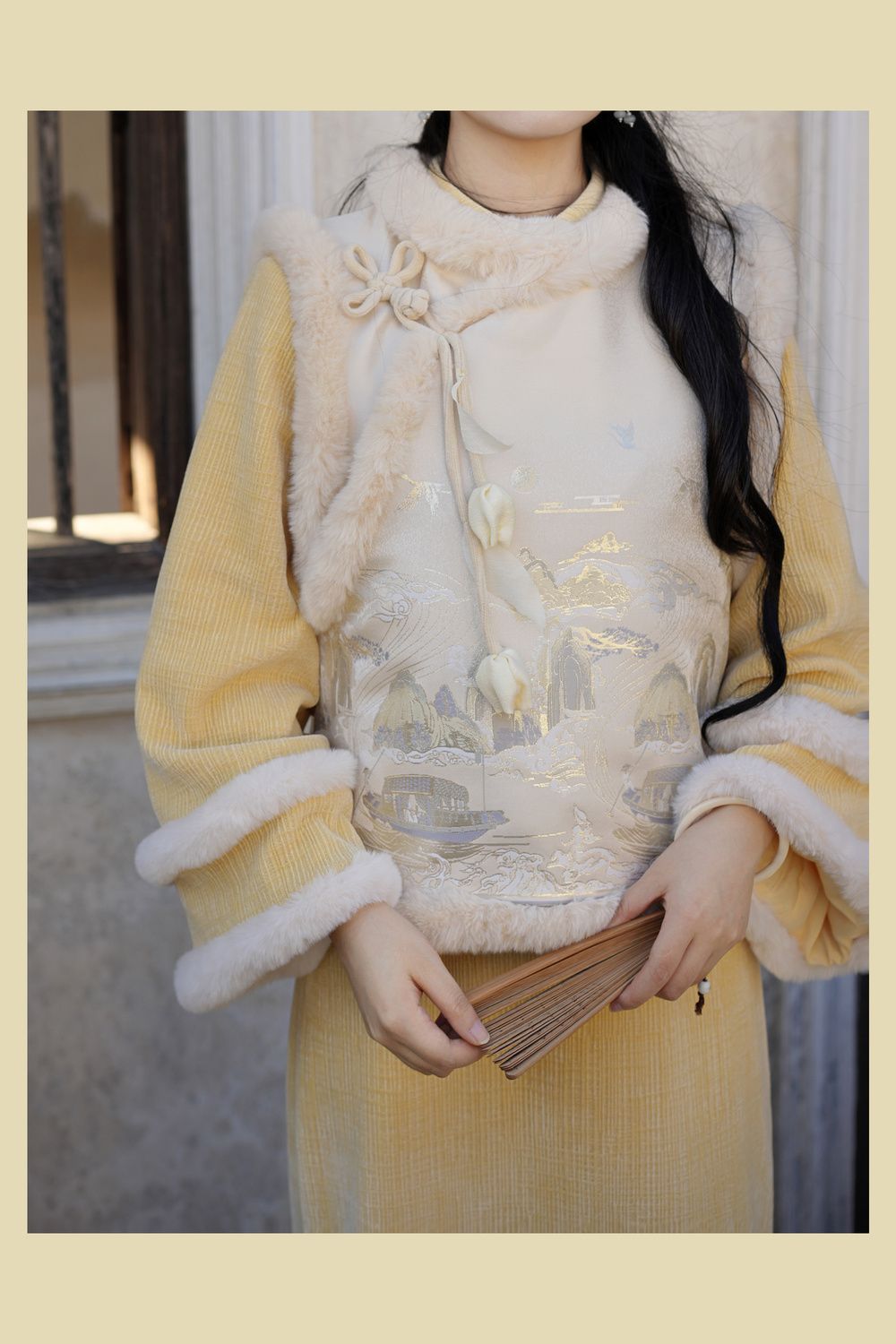 【小黄チー】超仙馬甲優し系黄色保温中長チャイナドレス2024冬の新型2点セット