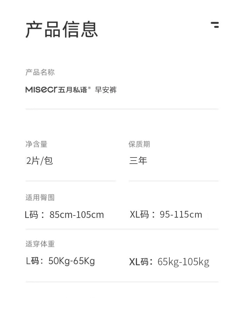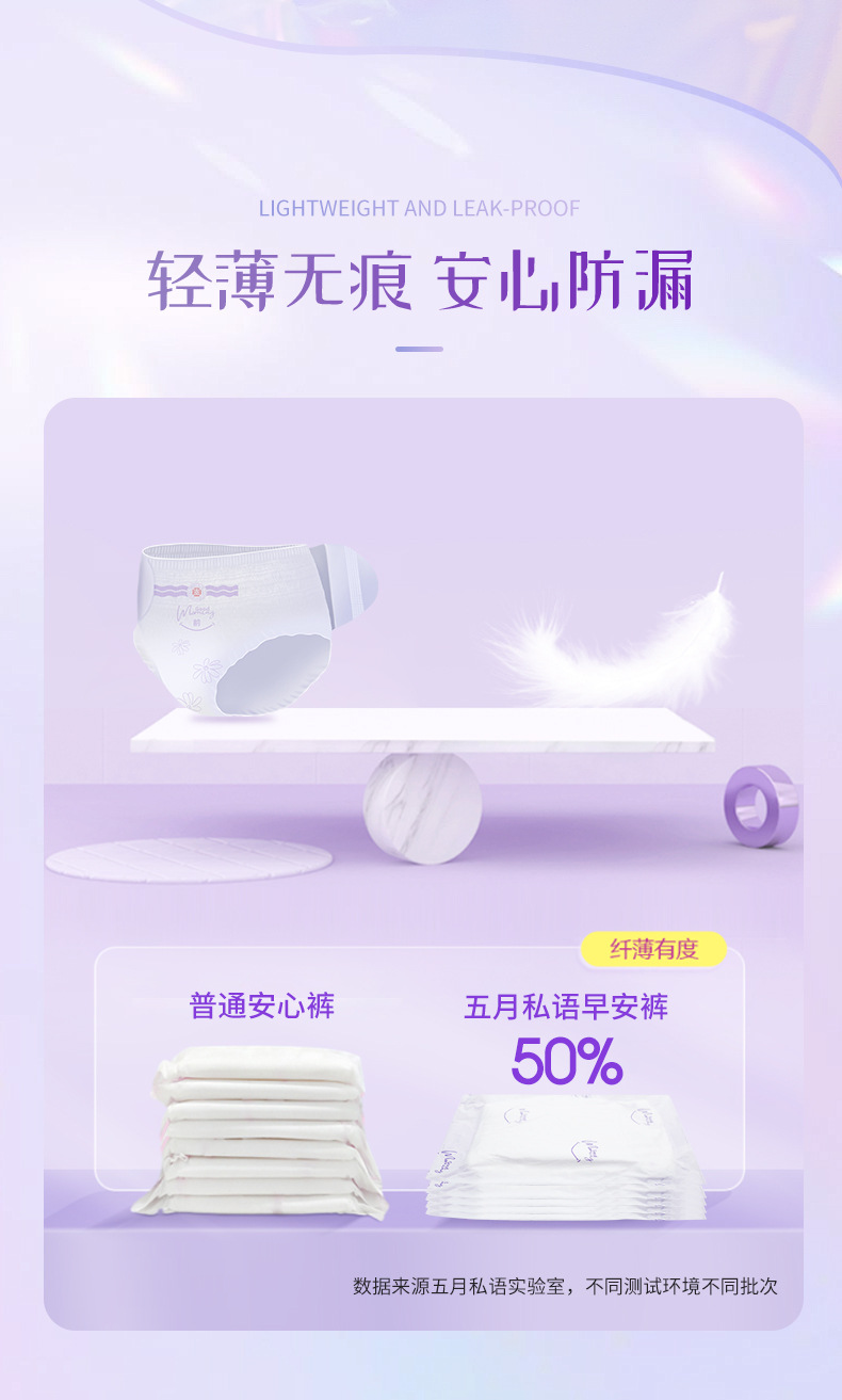 五月私语早安裤魔术贴无痕粘贴式透气防漏裤型卫生巾日用安心裤