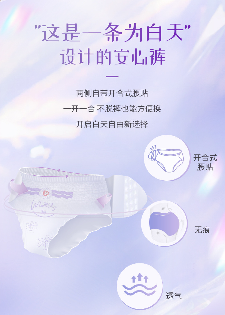 批发五月私语早安裤魔术贴无痕粘贴式透气防漏裤型卫生巾日用安心