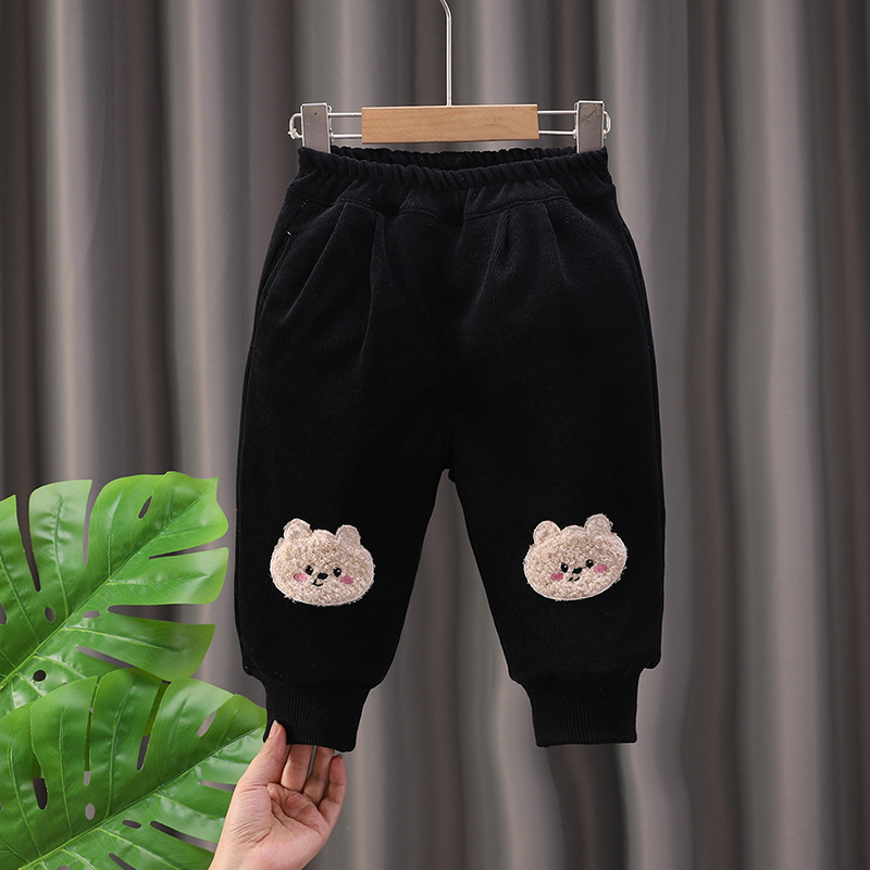 ダークブラウンフェイスレッドベアヘッドコットンパンツ,ダークグレーの顔の赤いクマの頭のコットンパンツ,黒顔赤クマ頭コットンパンツ