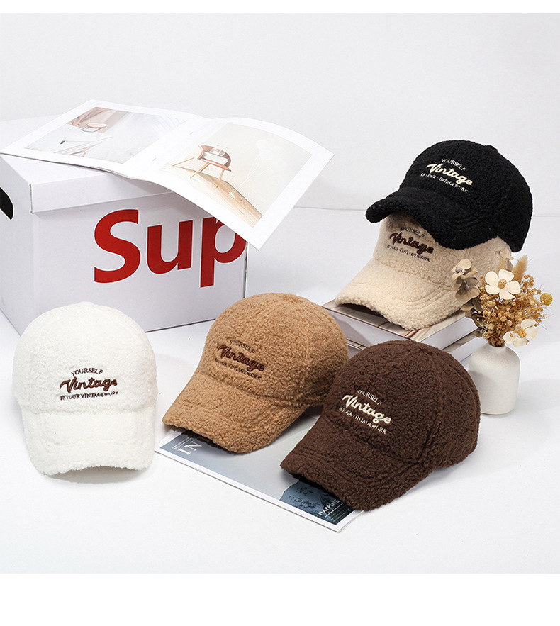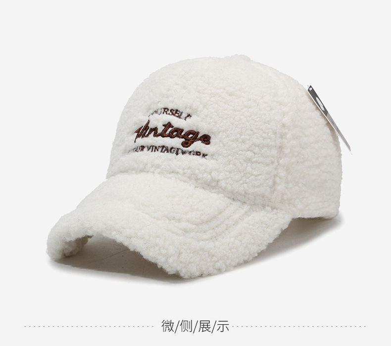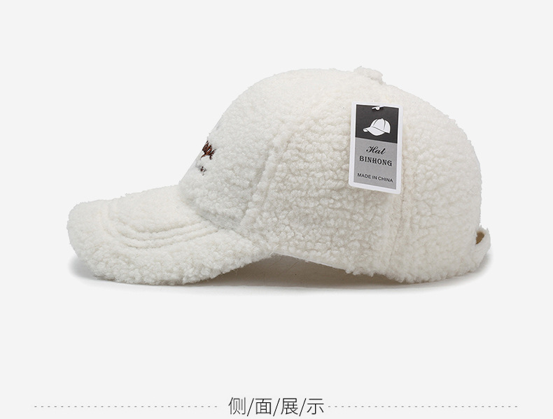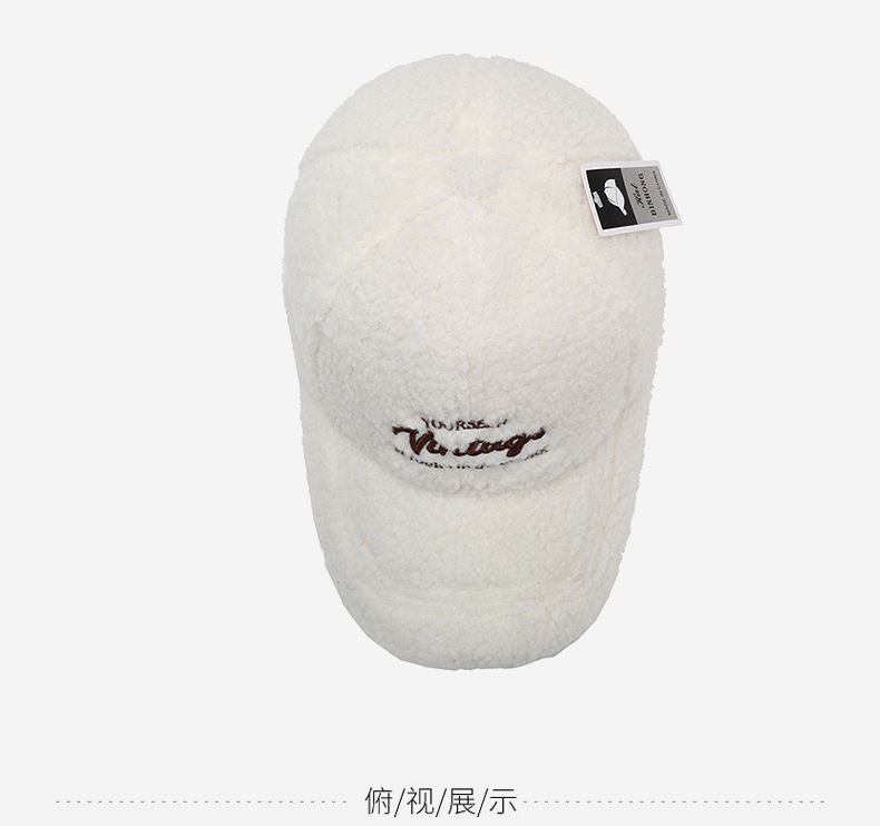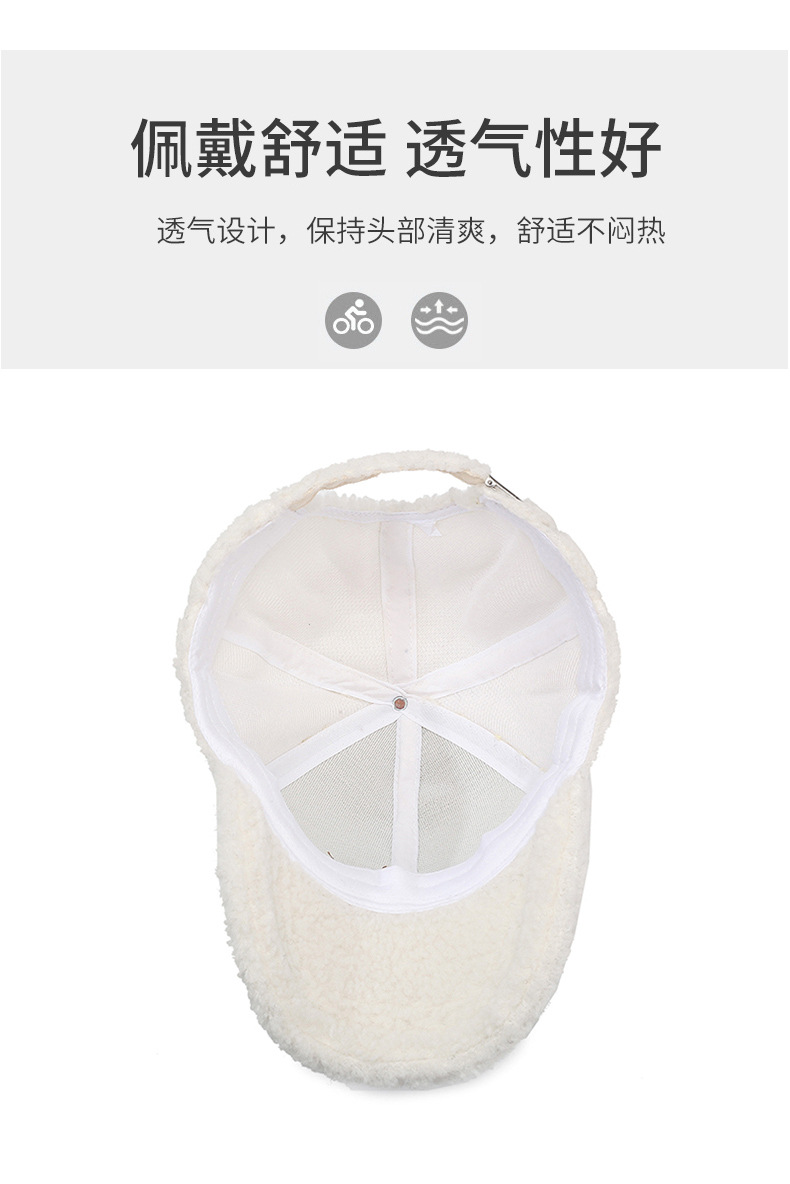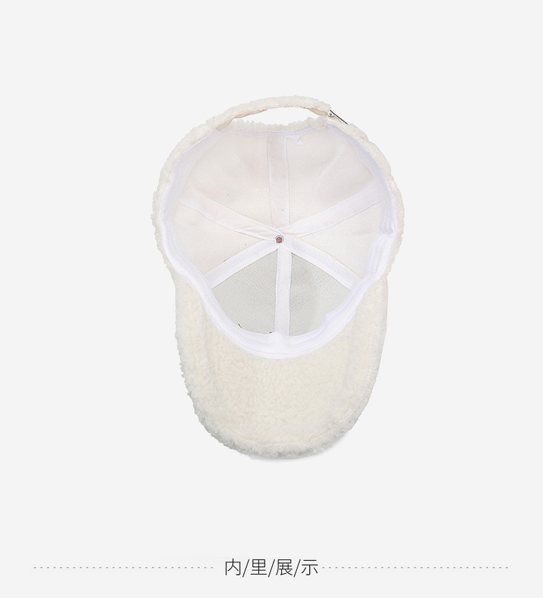 秋冬厚く暖かいラムウール野球帽韓国風トレンディな顔小刺繍ひさしキャップテディベルベット暖かい女性の帽子
