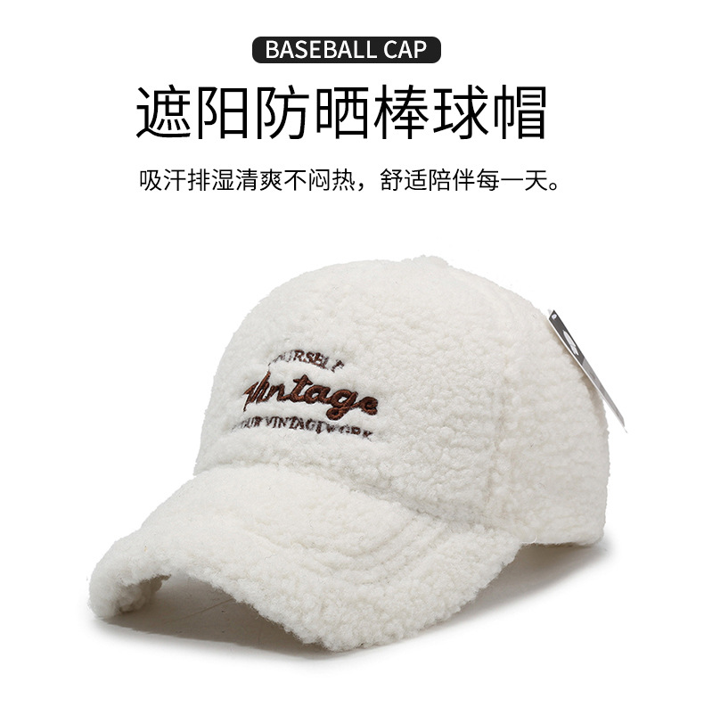 羊羔毛棒球帽女2025新款秋冬季时尚保暖加厚鸭舌帽显脸小毛绒帽子