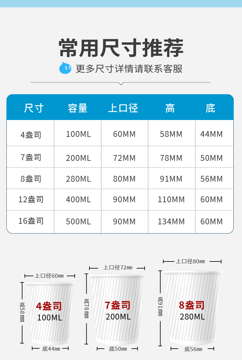4盎司、7盎司1000只/箱,不足一箱发货不便,麻烦拍够一箱; 8盎司、12盎司、16盎司为500只/箱。