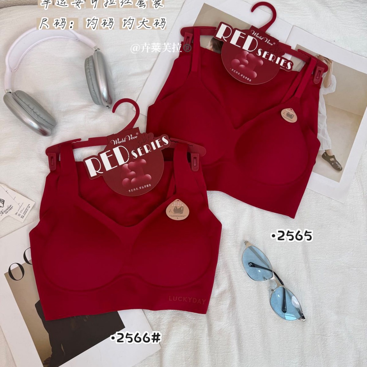 【鸿运系列】新年发财本命年专属内衣结婚套装时尚V领内衣内裤女
