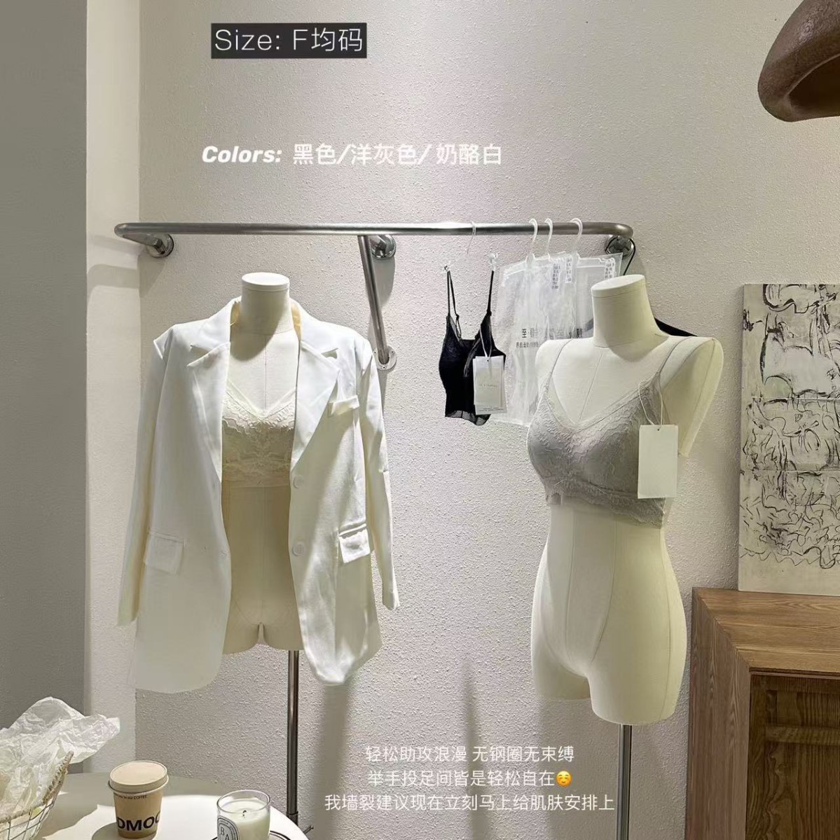小飞袖设计理念蕾丝拼接舒适体感天鹅绒磨毛保暖打底背心免穿内衣