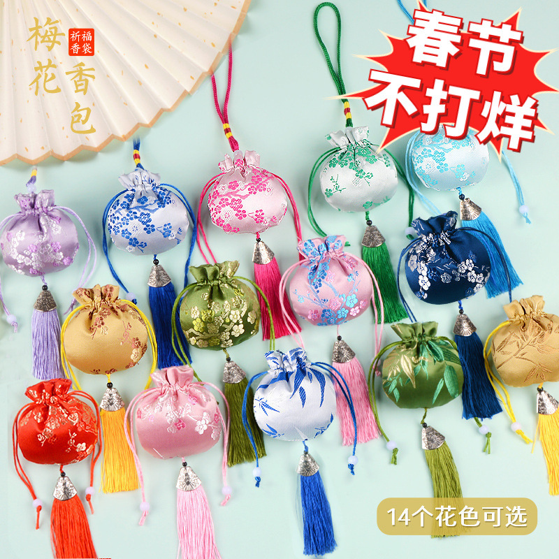 批发景区马年香包艾草香囊流苏空袋梅花古风寺庙中式荷包随身香囊