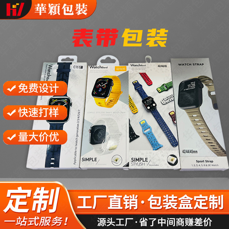 元の工場の中性時計バンドは現物の短い灰色のロープを包装して銀カードの窓を開けて時計バンドの包装箱を作る