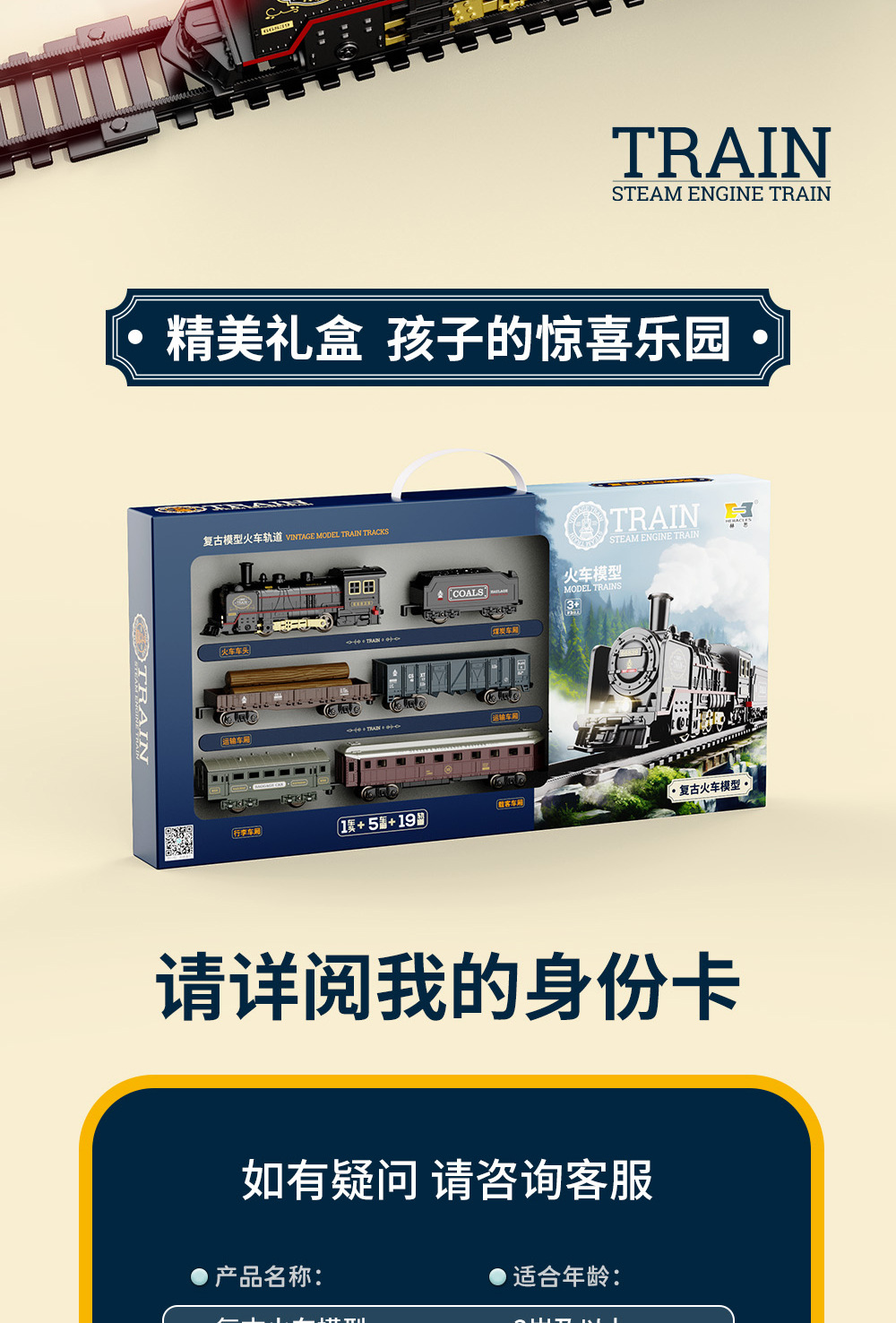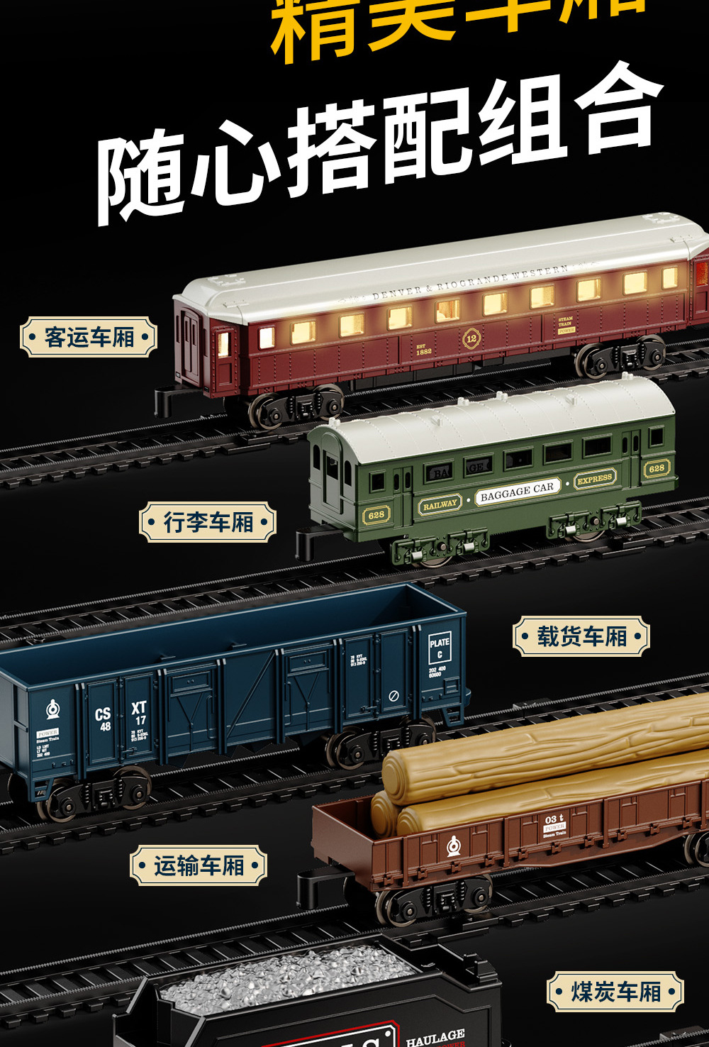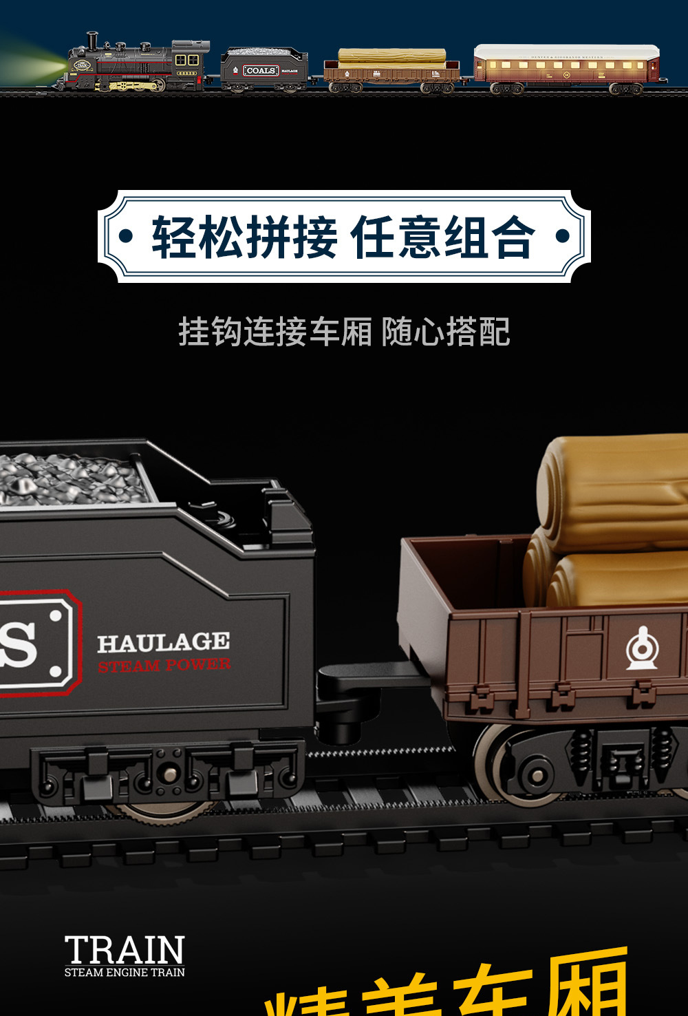 儿童益智玩具复古电动小火车男孩仿真轨道车蒸汽火车运输车厢模型