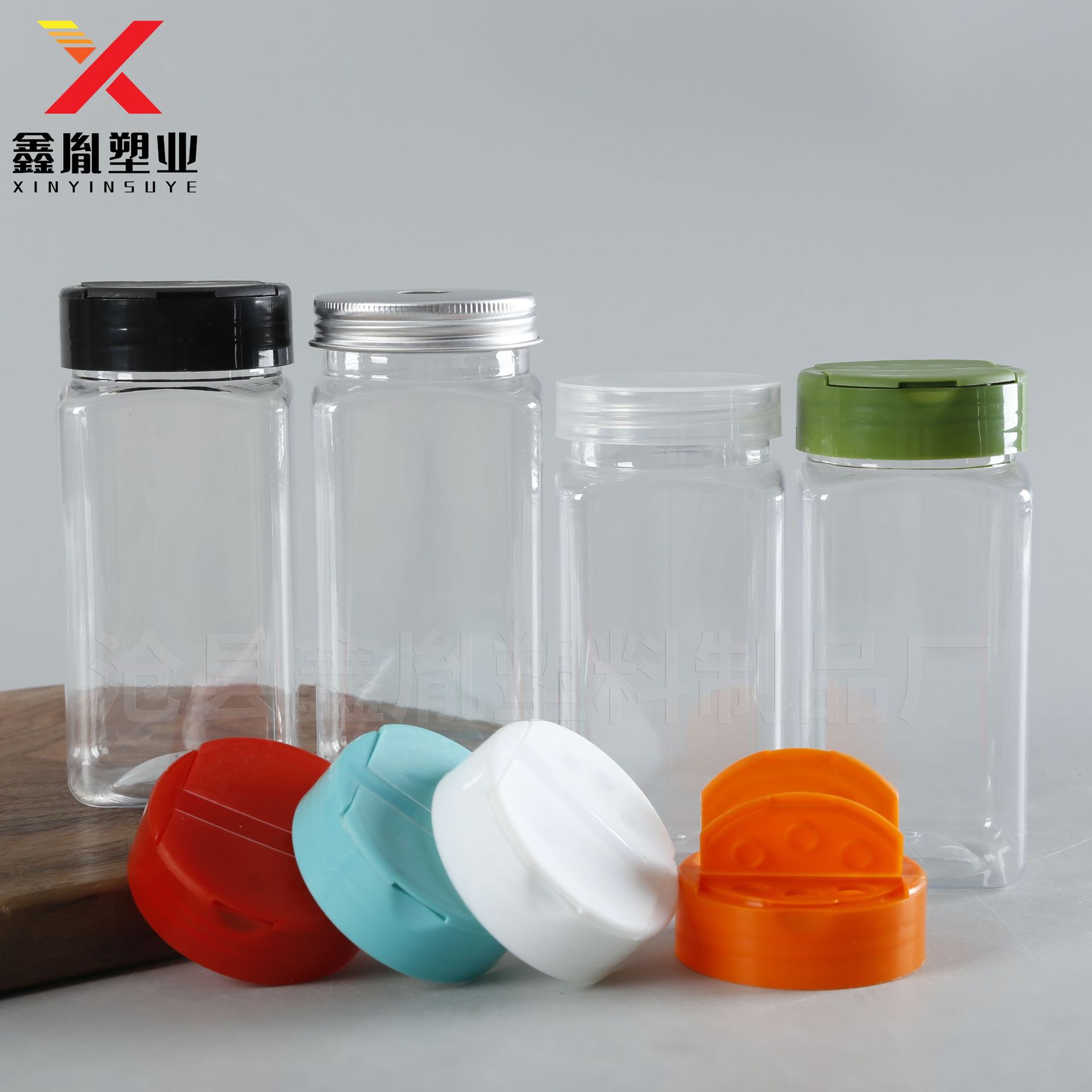 280ml蝴蝶盖塑料罐胡椒粉塑料瓶pet透明烧烤撒料瓶铝盖方形塑料瓶