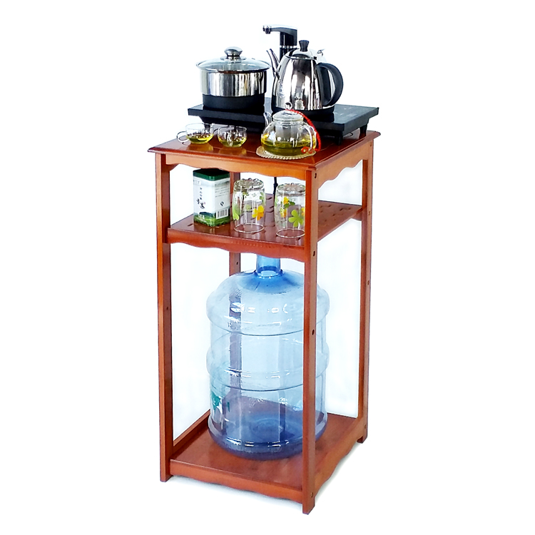 2.2楠竹放水桶置物棚シンプルモダン収納移動茶棚木製茶車オフィス浄水器