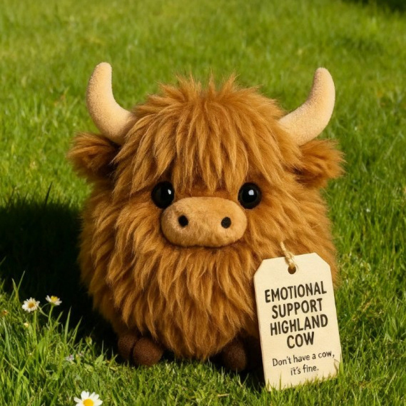 跨境HighlandCowPlush仿真苏格兰高地牛圆滚滚球球长毛牛玩偶挂件