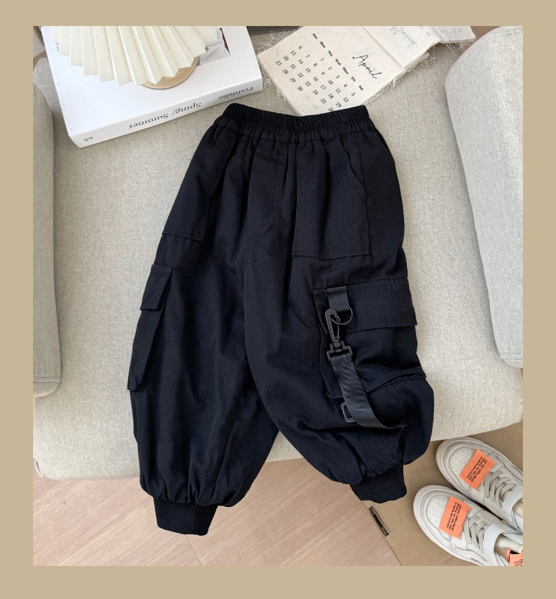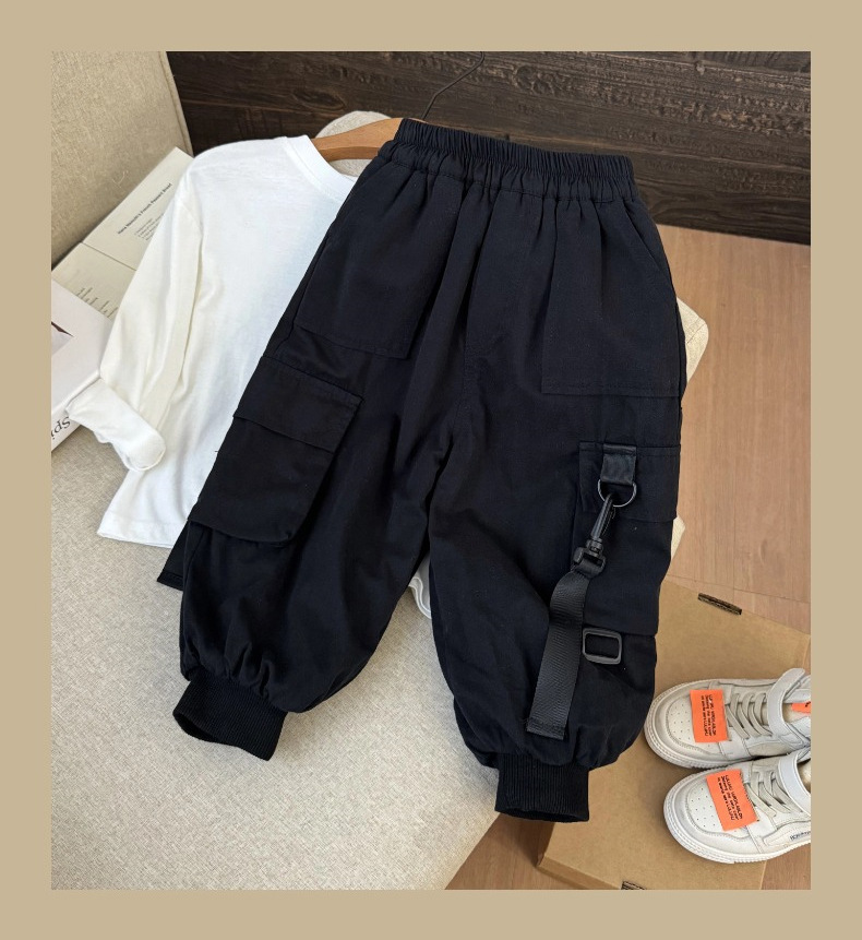 男の子用クールでスタイリッシュなオーバーオール、秋冬2025年新作、裏起毛の裾絞りパンツ、暖かい長ズボン、子供用おしゃれパンツ、トレンド