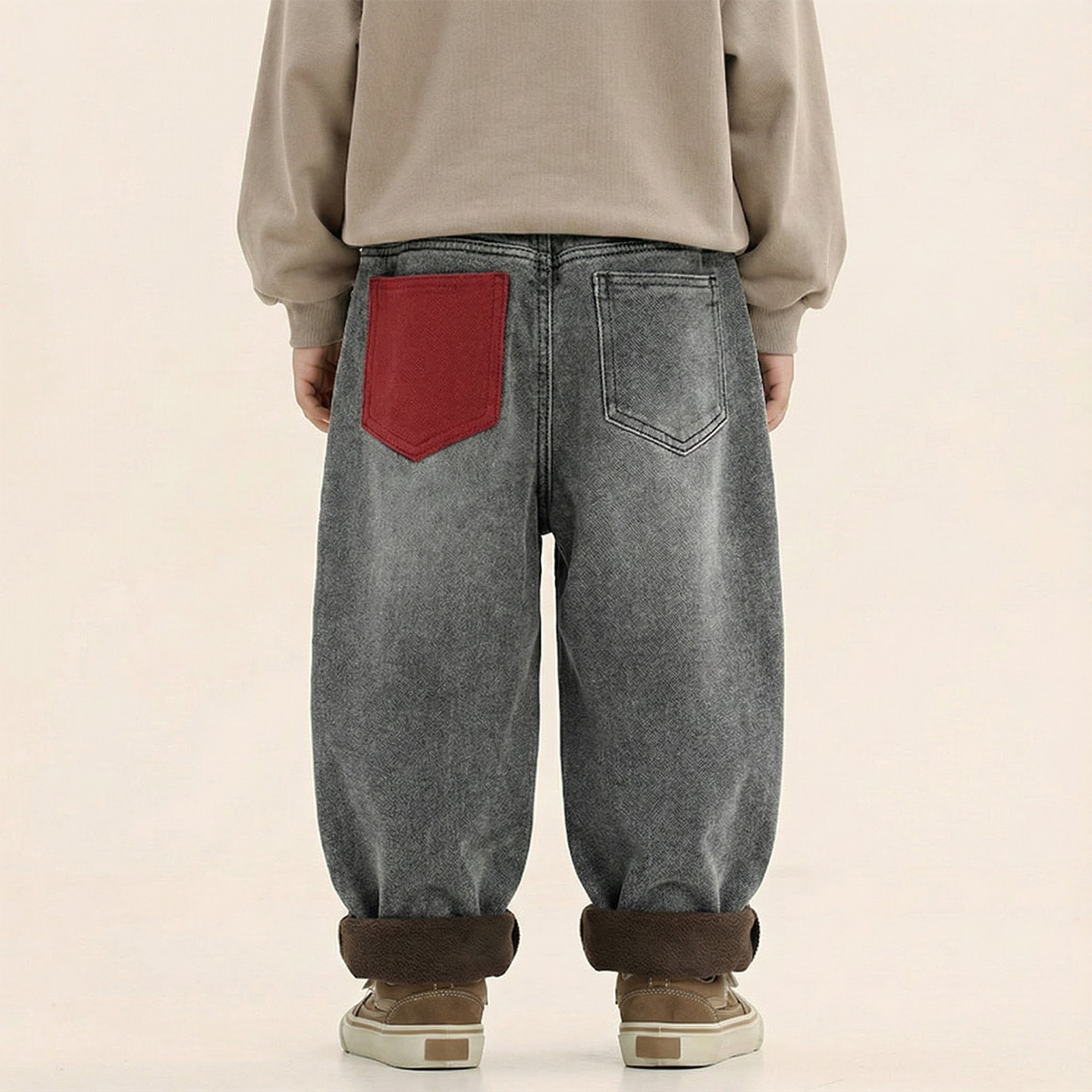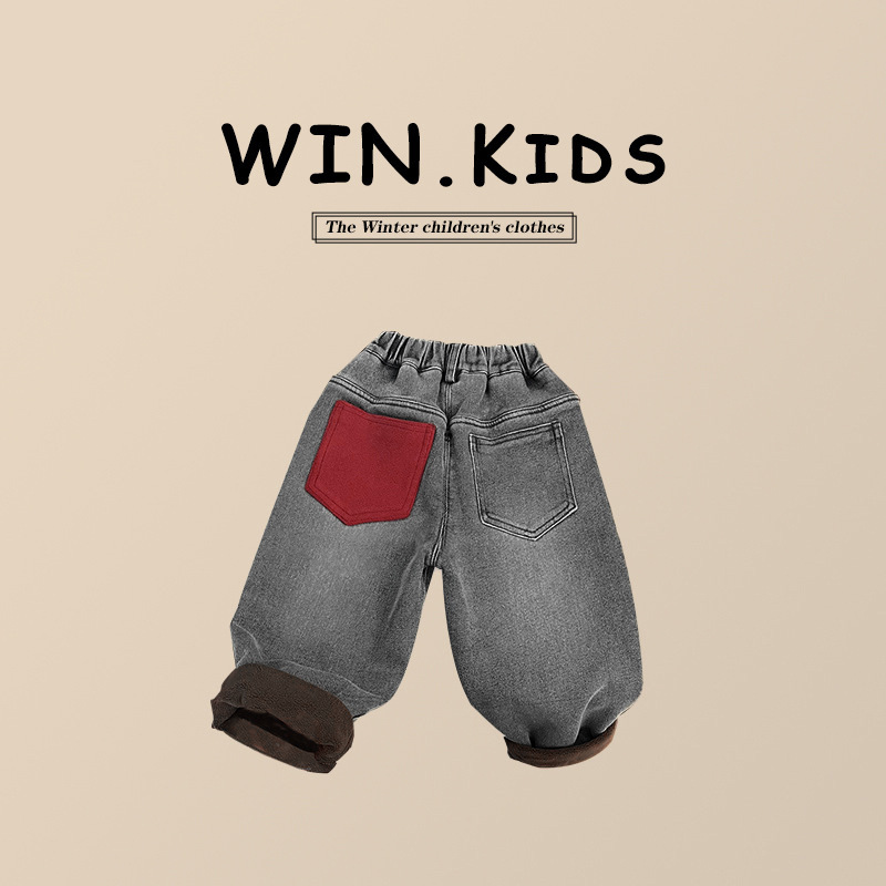 子供用裏起毛カジュアルジーンズ 2025年冬 子供用一体型裏起毛おしゃれ厚手パンツ ベビー秋冬服トレンド