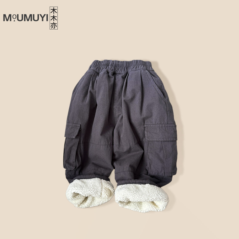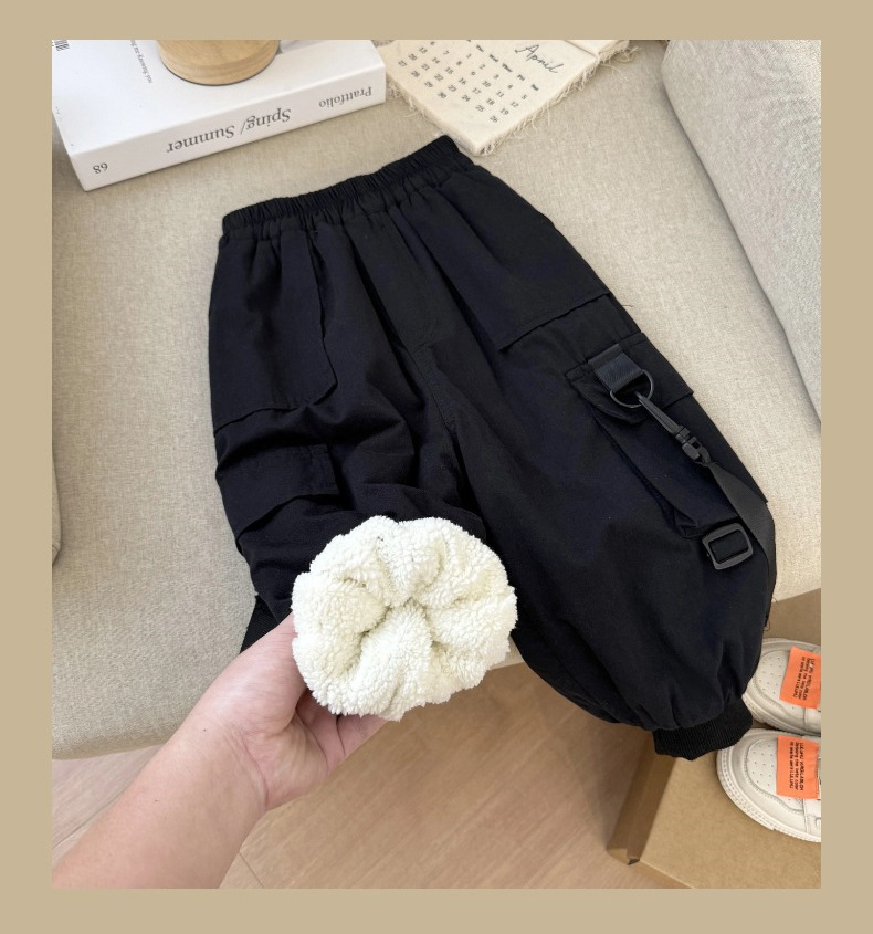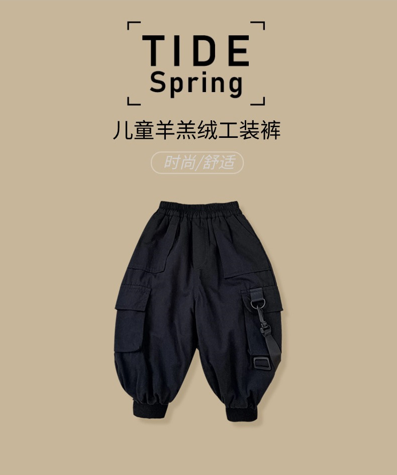 儿童宝宝加绒加厚裤子2025冬季羊羔绒工装裤中小童休闲百搭长裤潮