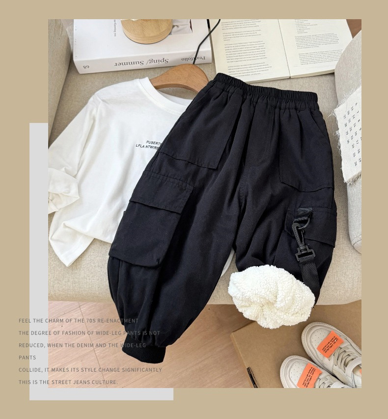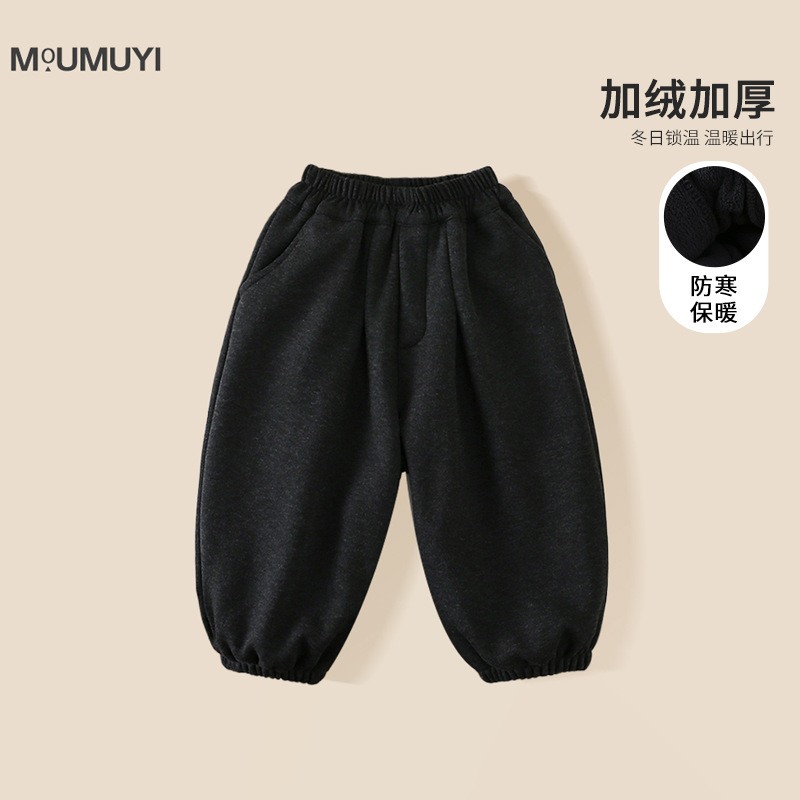 男童加绒加厚束脚裤2025冬季新款韩系中小童洋气宽松百搭纯色裤子