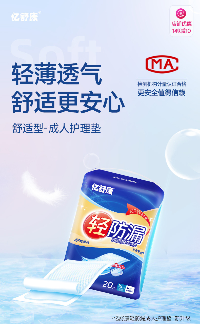 億舒康軽防漏舒適型成人看護マットXLコード20枚製品仕様60*90cm