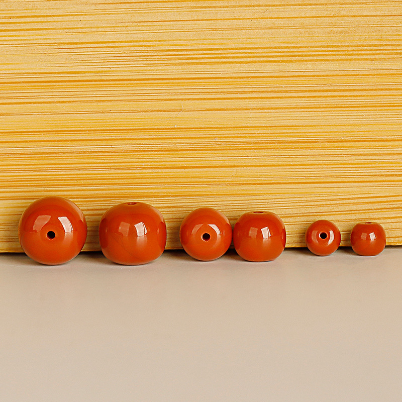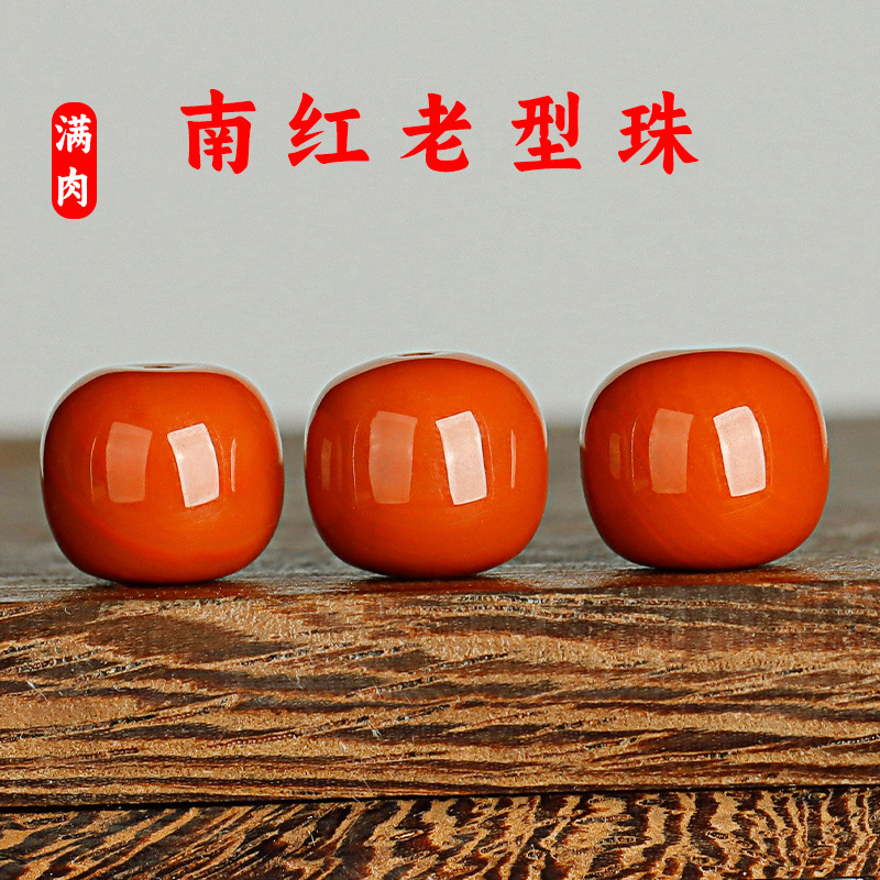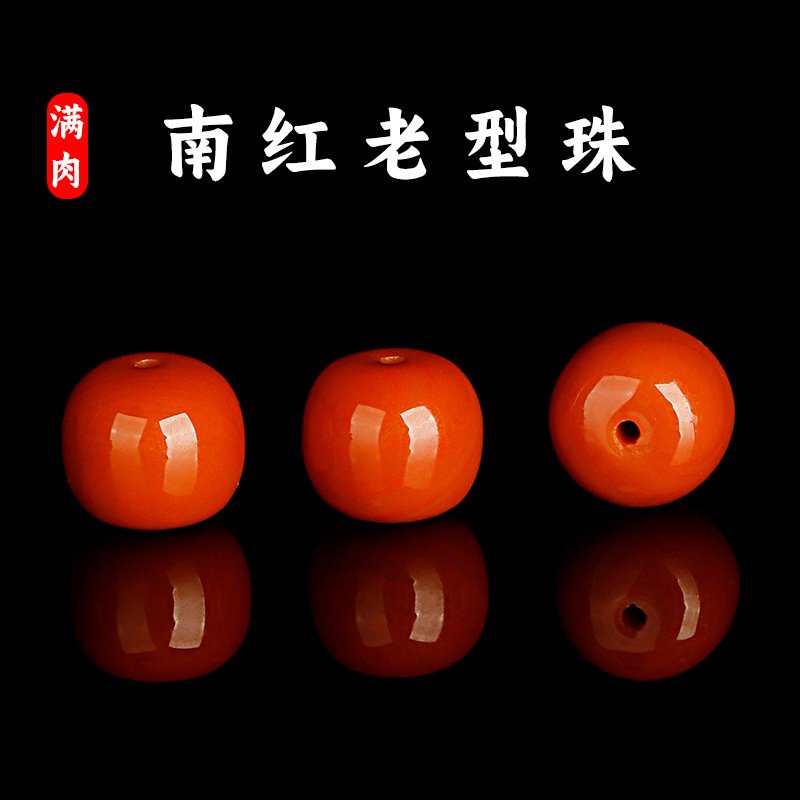 天然南紅老型珠保真頂珠炎柿紅満肉満色メノウDIY桶珠散珠部品