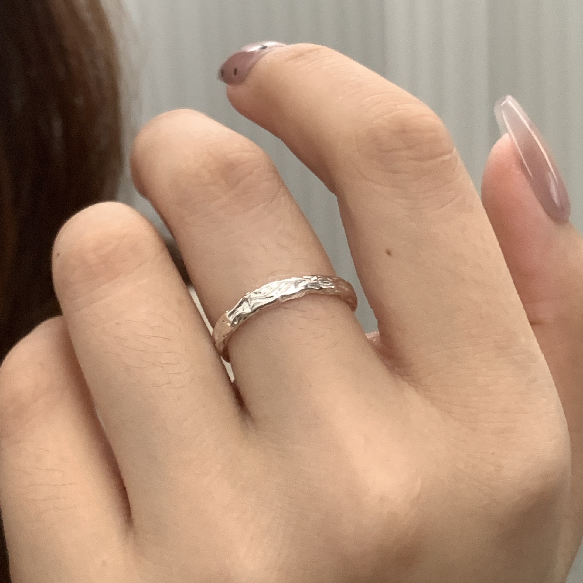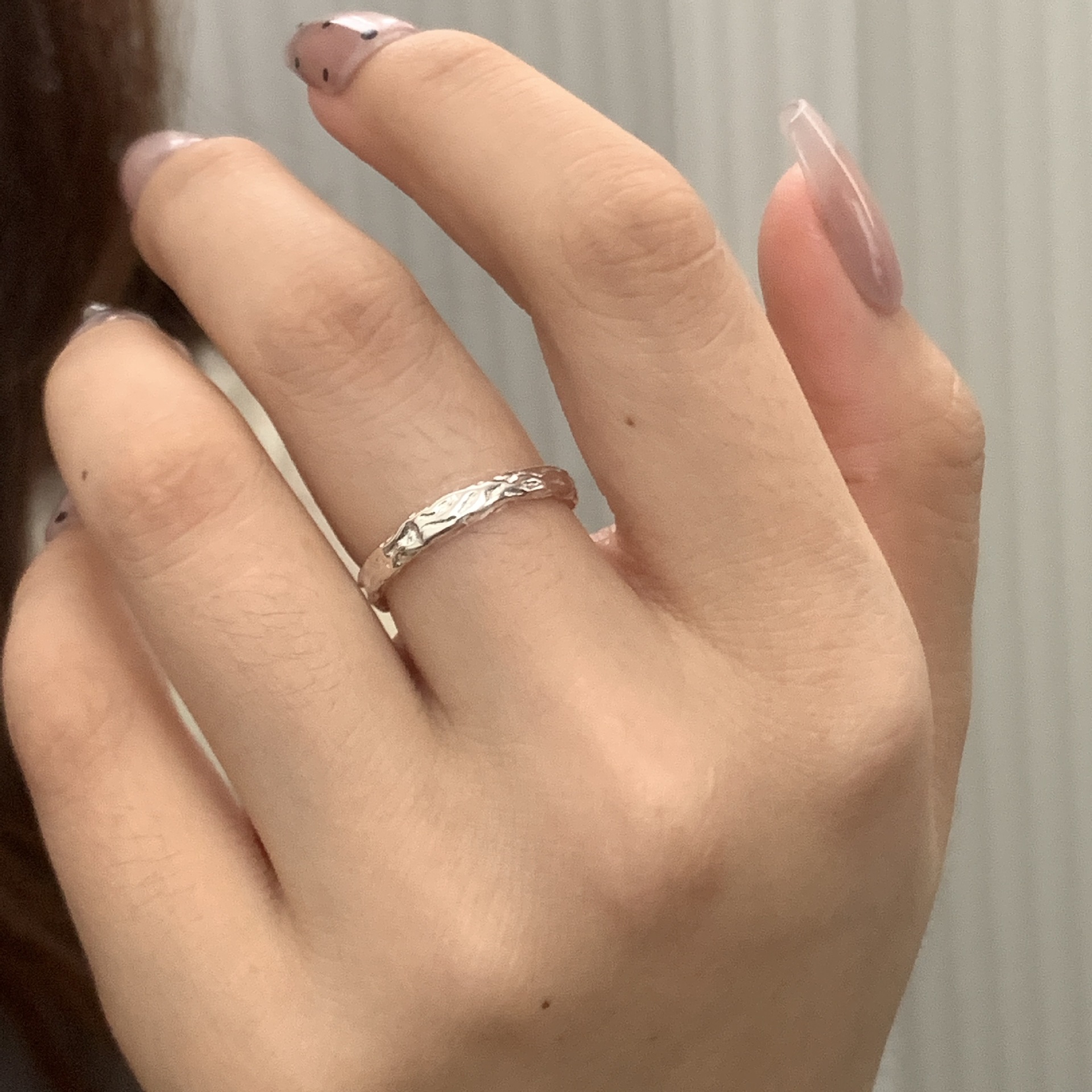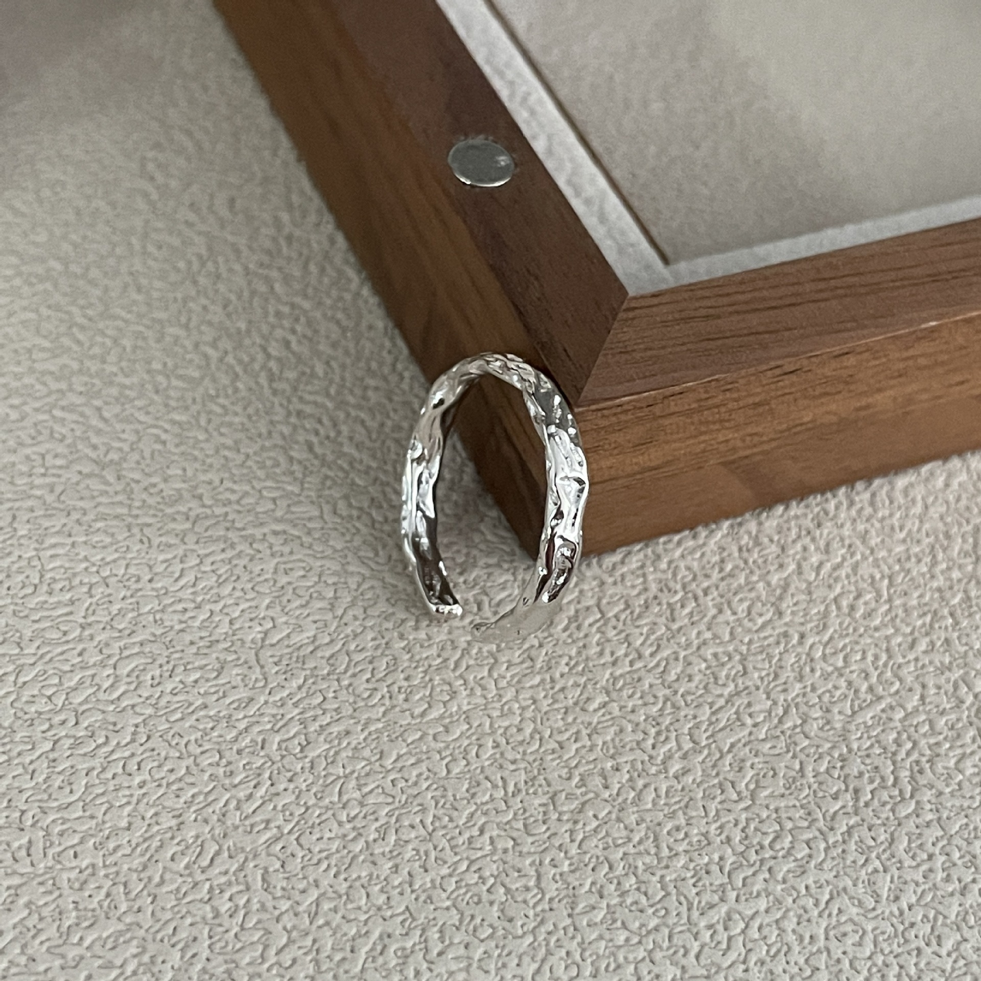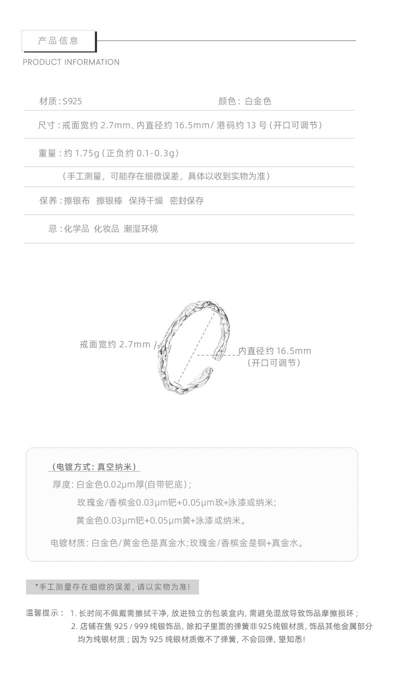 イナS925純銀錫紙の質感の個性的な開口指輪の女性日韓INSシンプルな冷たい風の指の指輪