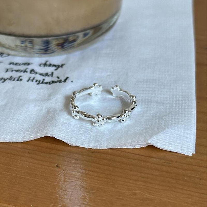 サイナ韓国版S925純銀小花指輪女性シンプル紅書INSファッション開口リング