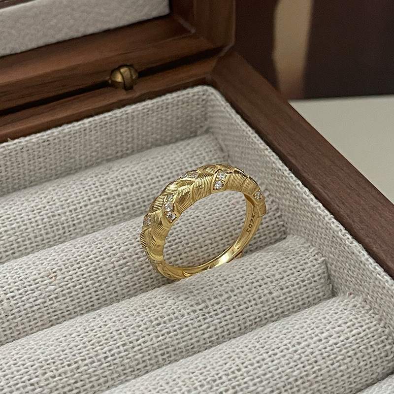 サイナフレンチレトロ麦穂伸線編み指輪レディースS925純銀穂平安高級感リング