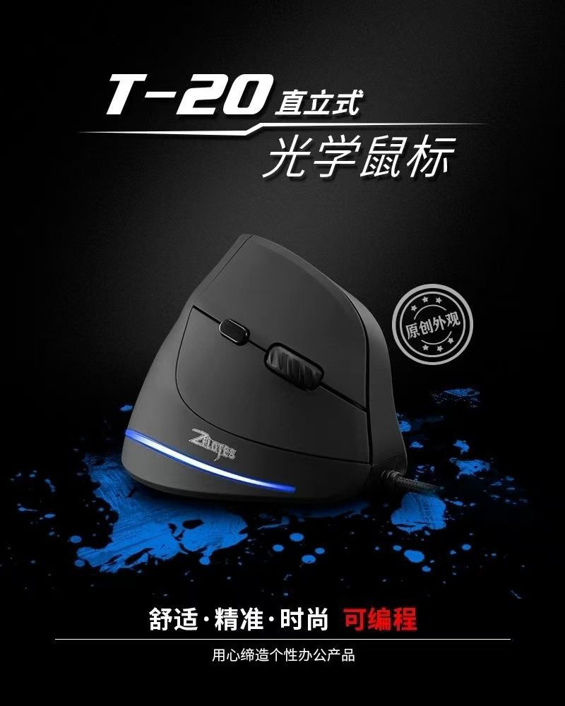 ZELOTES T20垂直側握りマウス人間工学静音有線マウスコンピュータゲームオフィスマウス