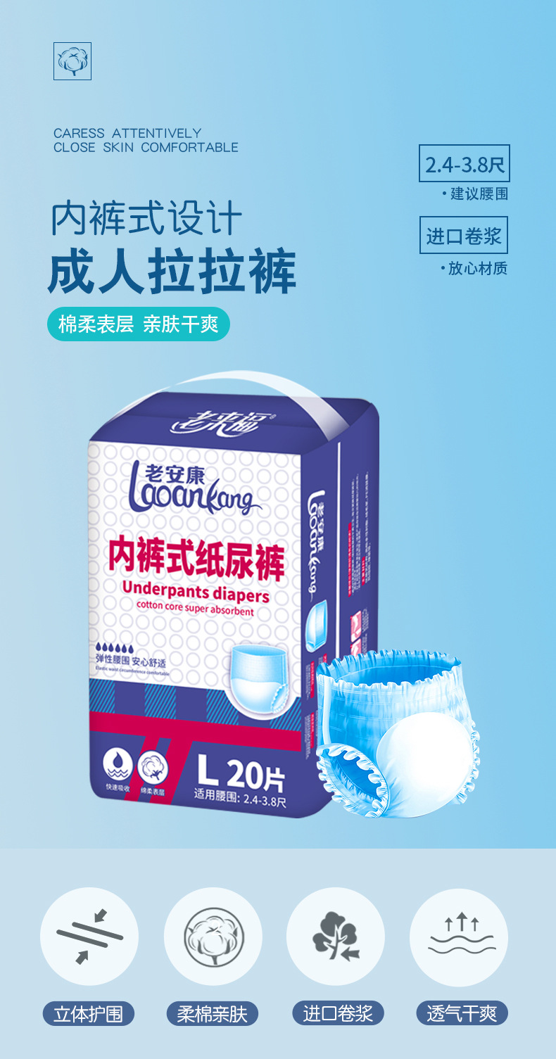 老来福成人拉ズボン男女看護老人用尿不湿大使い捨て下着式紙おむつ