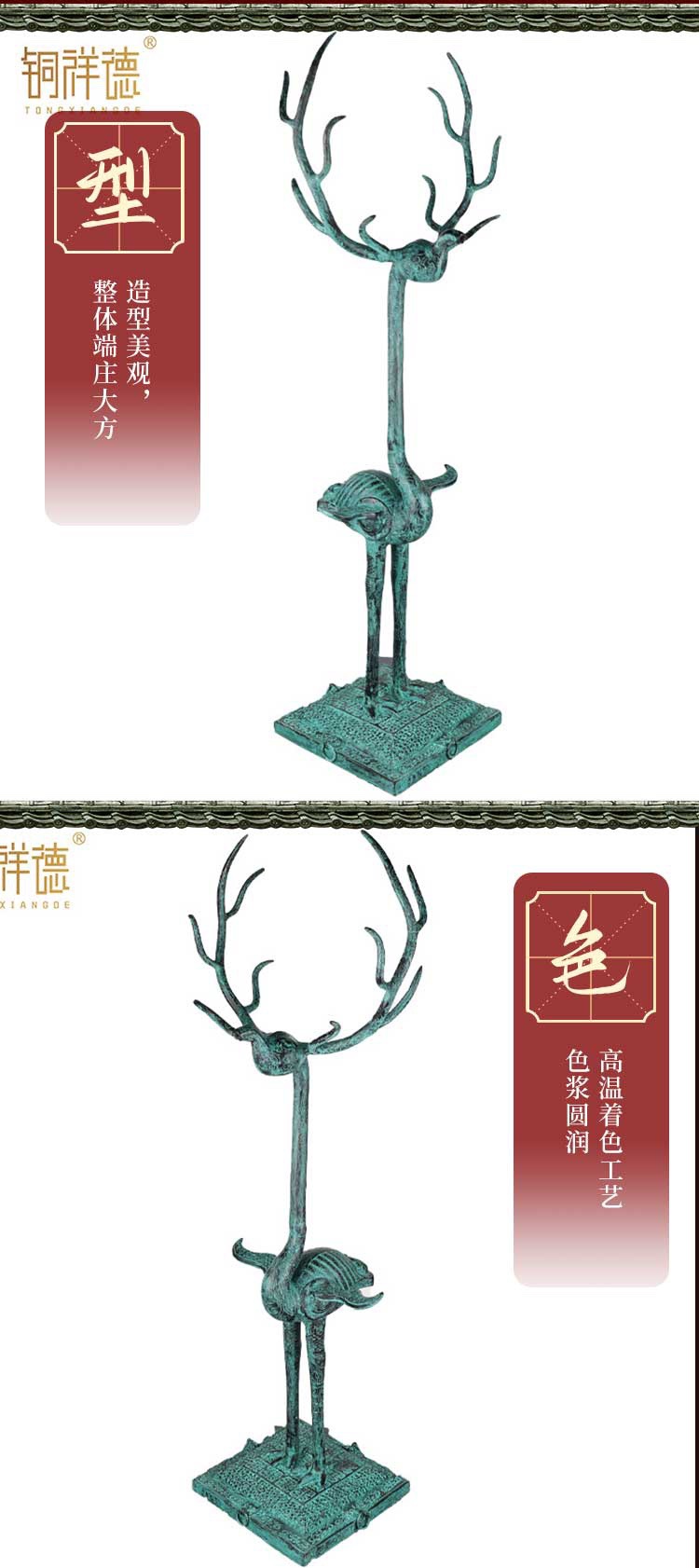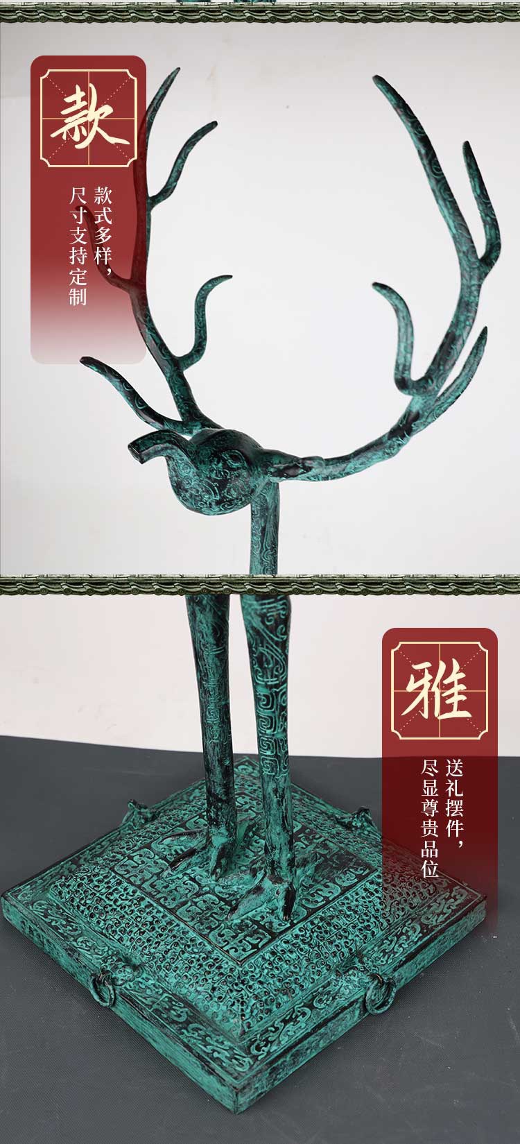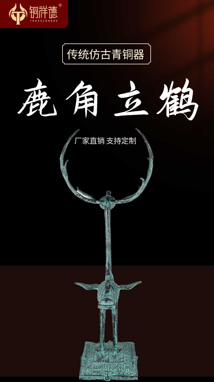 制作古青銅器置物鹿角立鶴結婚祝い映画とテレビ道具外事プレゼント博物館展示品コレクション