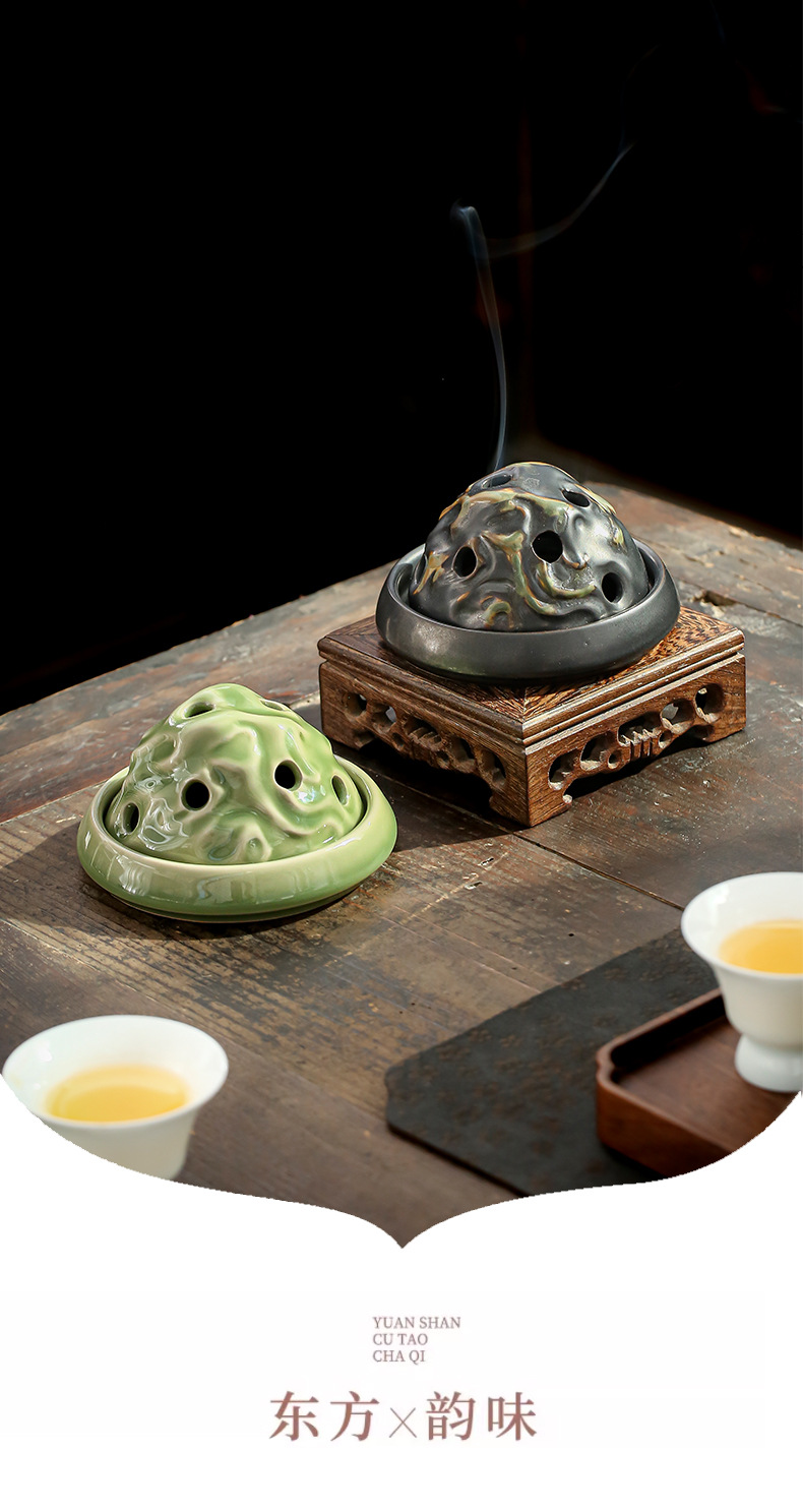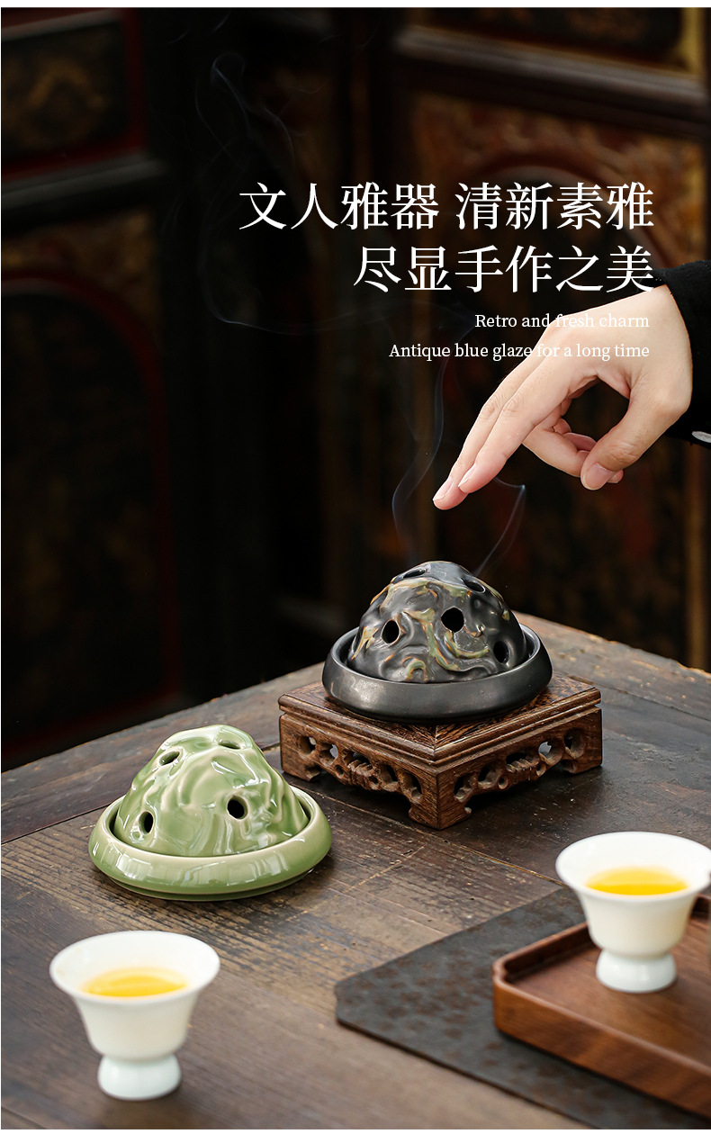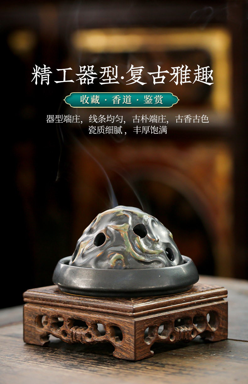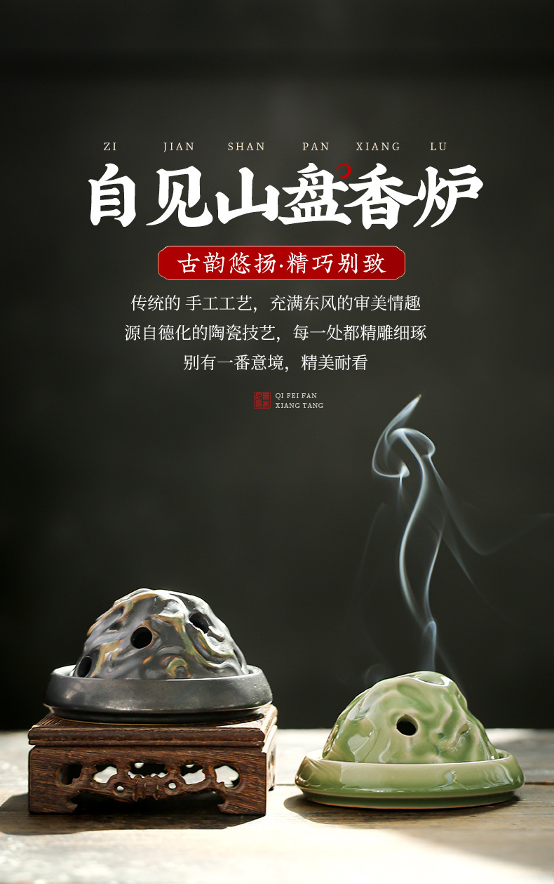岩山自见山陶磁盘香炉レトロ置物家庭用香薫香座茶室室内茶道卸