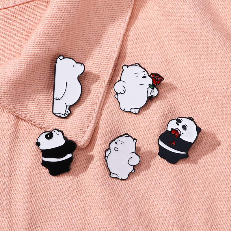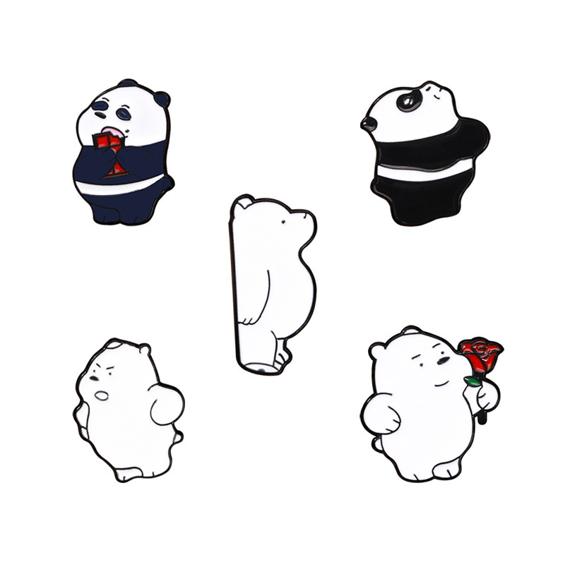 漫画の美しい漫画の3匹の白熊のバッジの賢い服装の装飾のブローチは百合のかわいい男女のかばんの装飾の贈り物です。