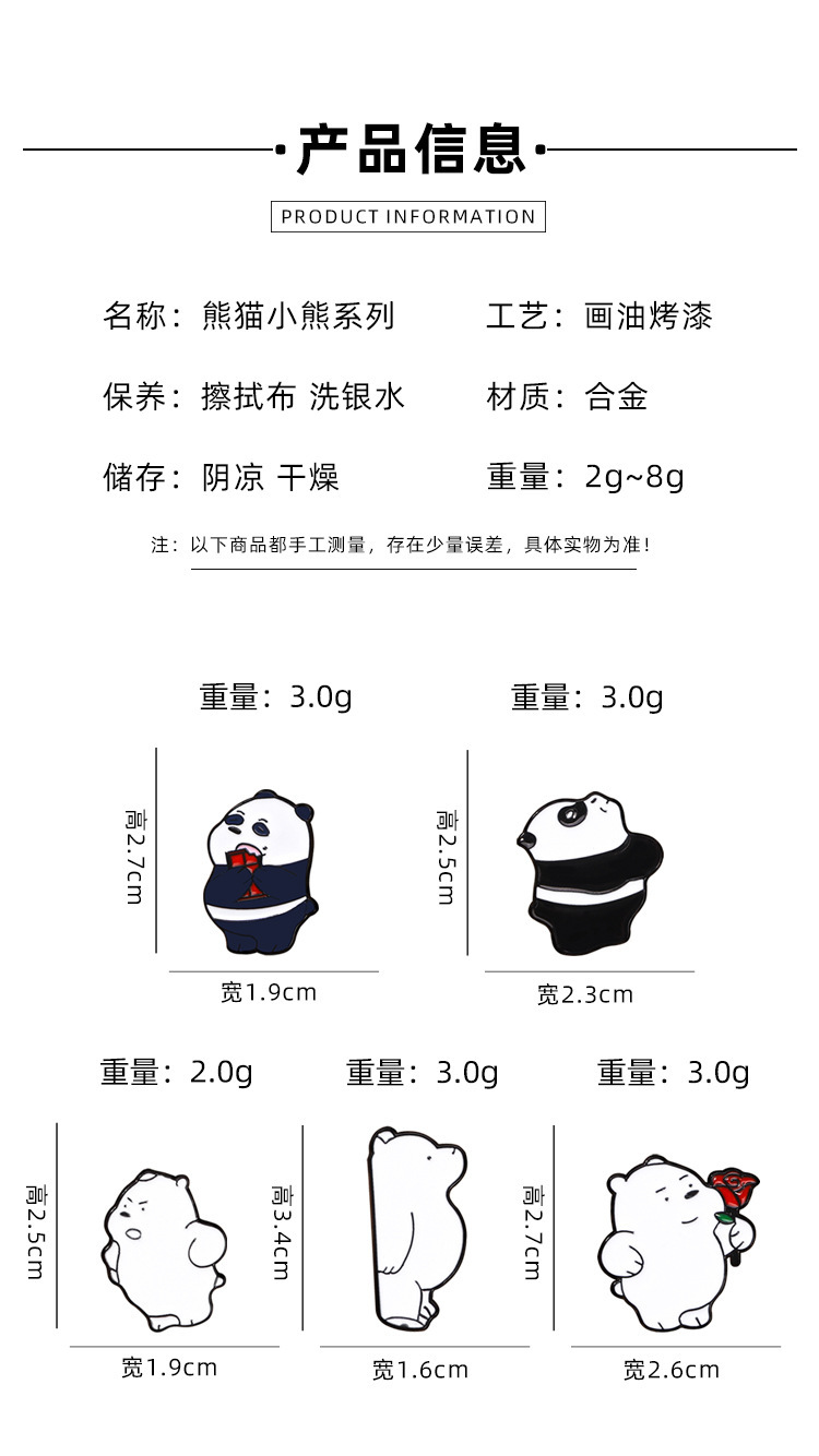中国風パンダブローチ国潮記念品漫画バッジリュックサックカップル服アクセサリーピン留め装飾品