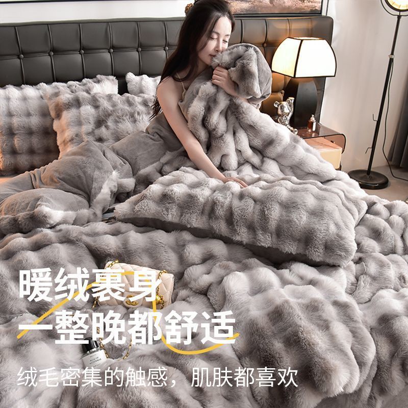 轻奢渐变兔毛绒床上四件套法兰牛奶绒床单被罩床笠三件套