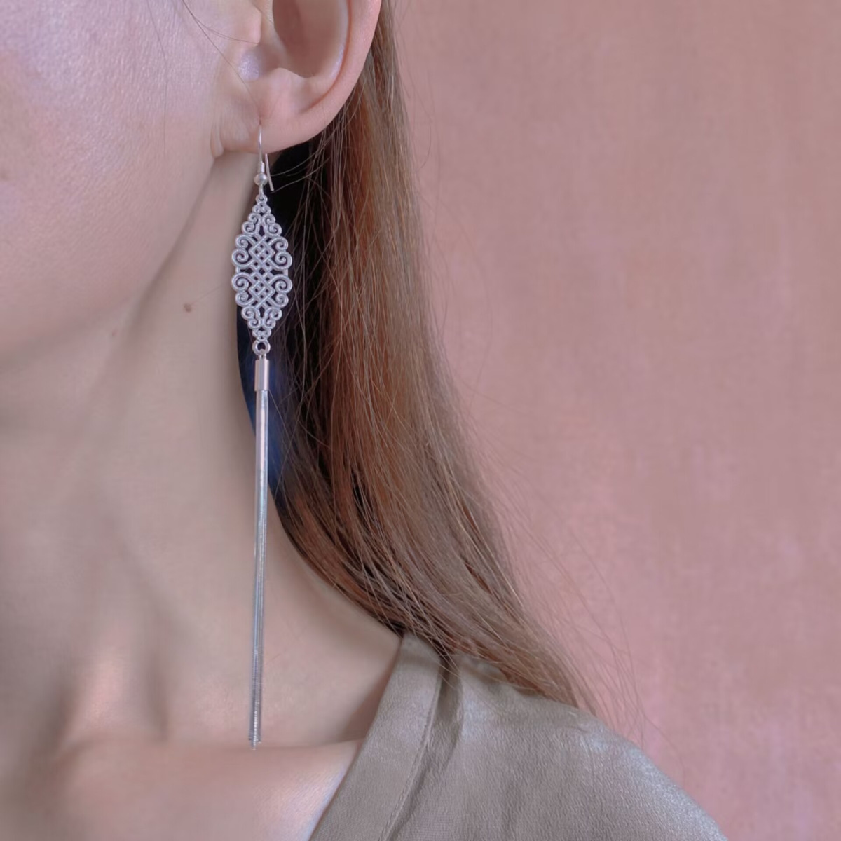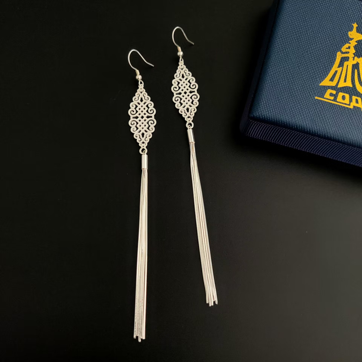 モンゴルジュエリー蘇徳モンゴル銀飾り純銀流蘇イヤリングイヤリング民族風精品オリジナルタイプ遊牧風