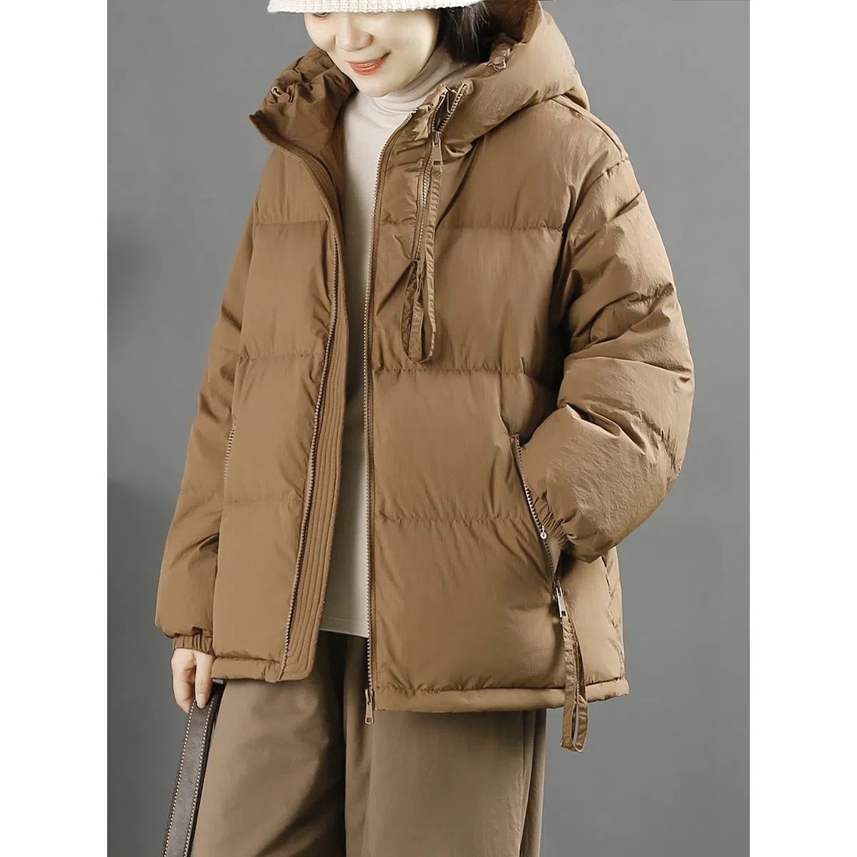 クラインブルー フード付きダウンコットンジャケット レディース 韓国風 ショート丈 2025年冬新作 ゆったり 小柄さん向け 万能コート