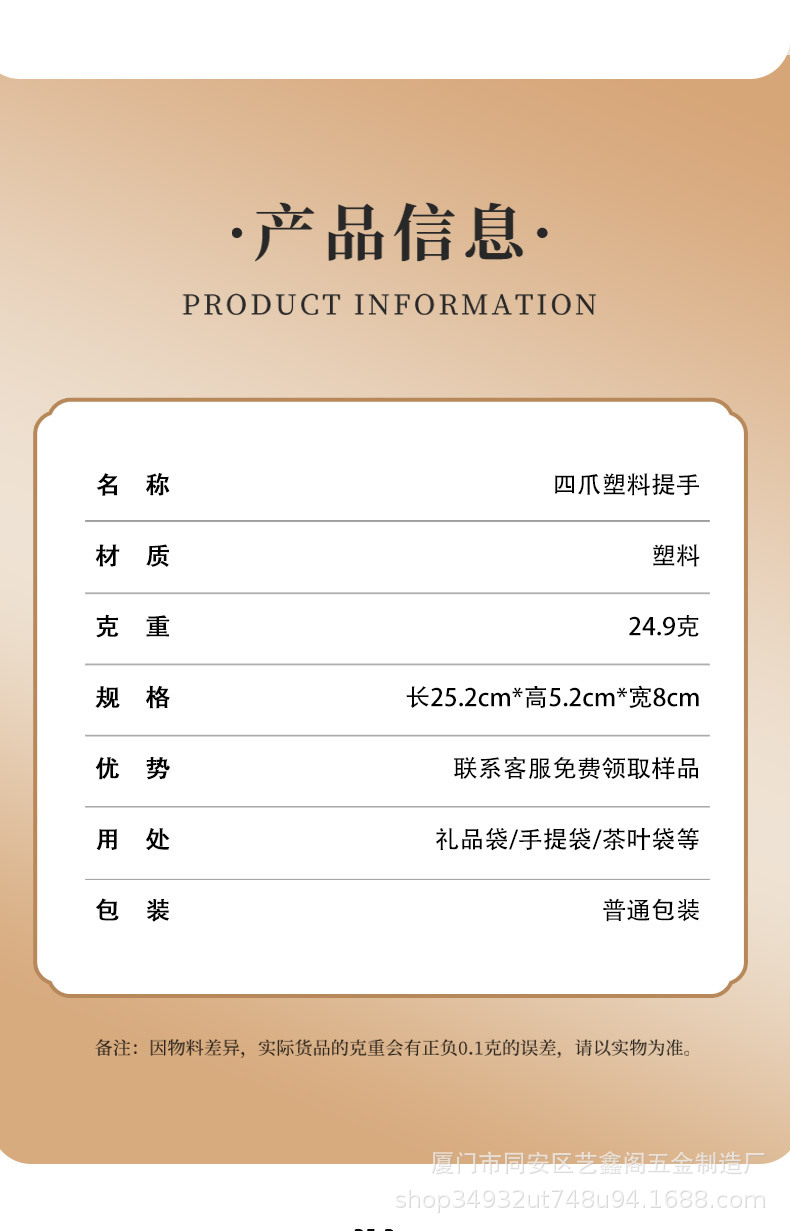 2024新しいファッション四爪ギフトボックス手提げ袋ボックスワインボックスプラスチックハンドル茶ボックス包装ハンドルアクセサリー