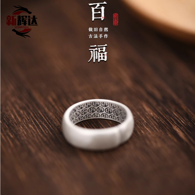 百福の足の銀の指輪の男女の新型の小さい大衆のデザイン感の復古の開口の素の輪はシルクの人差し指の指輪のカップルを引きます。
