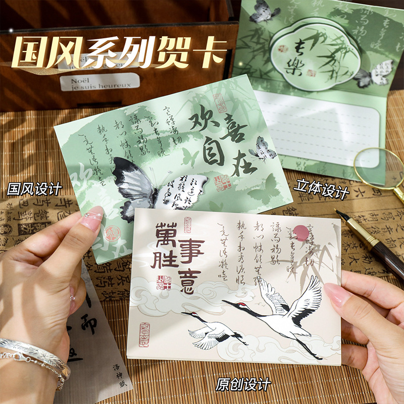 古風立体グリーティングカード祝福カード創意復古祝日記念メッセージ国風カード誕生日グリーティングカード卸売り