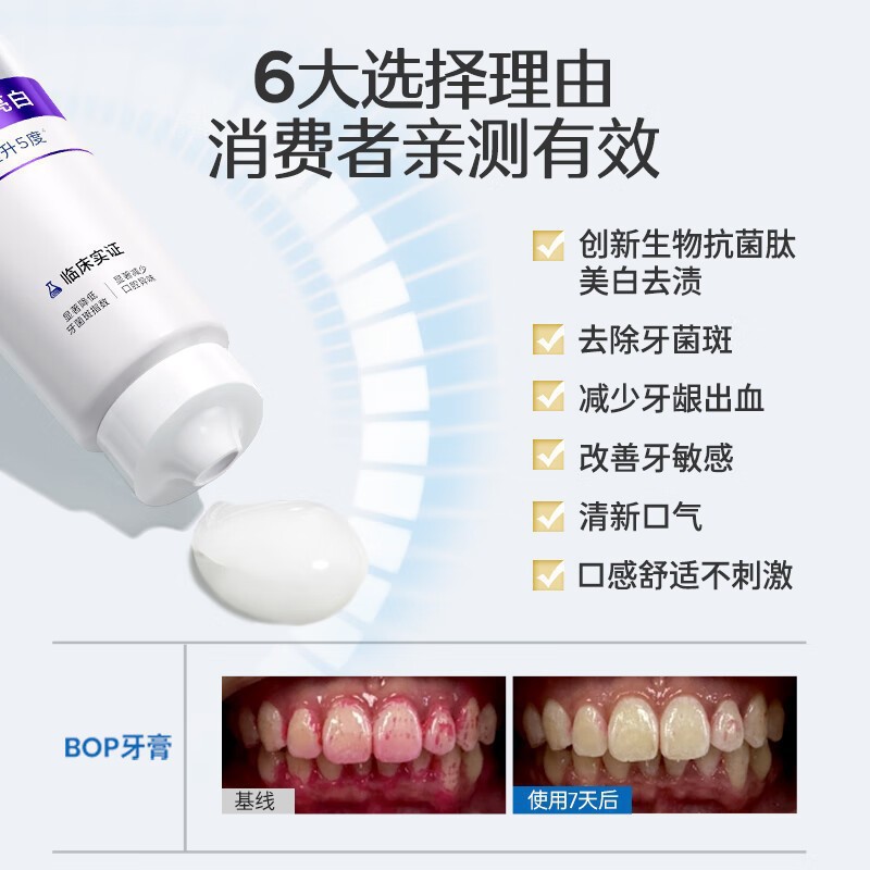 波普专研bop牙膏活性抗菌肽多效生物溶解牙结石清新口气牙龈护理