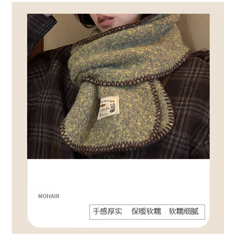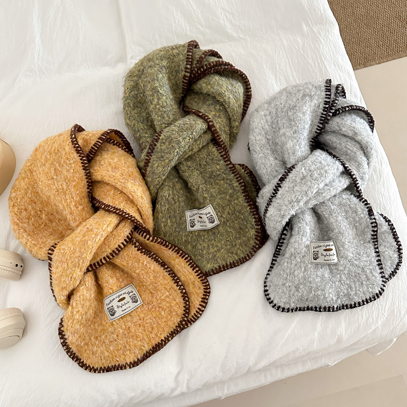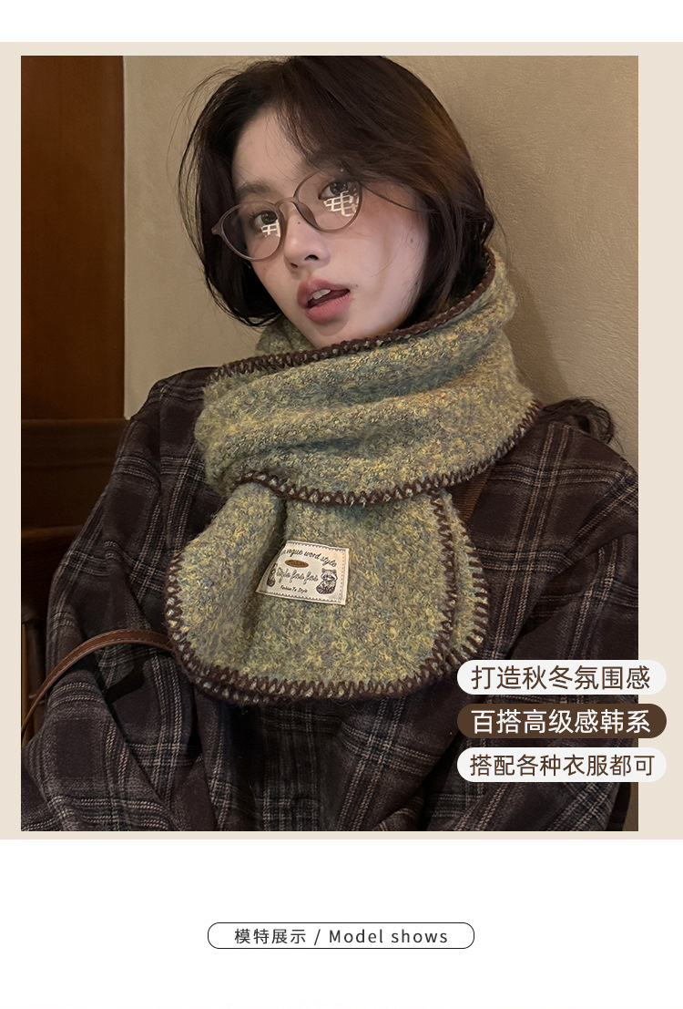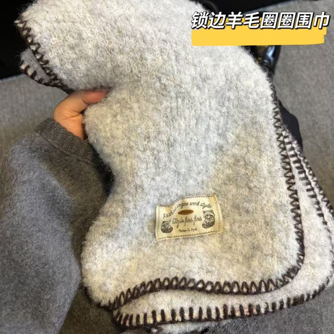 新款韩系复古锁边围巾女羊毛混纺软糯加厚针织保暖百搭秋冬季围脖