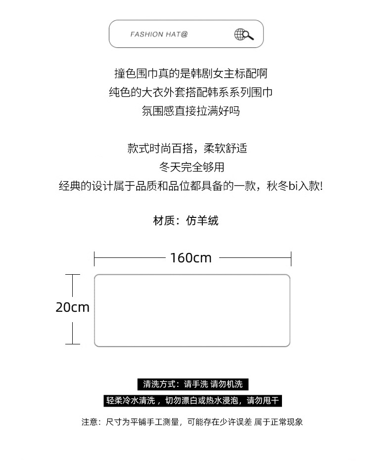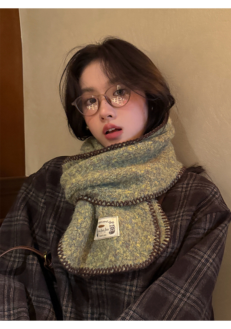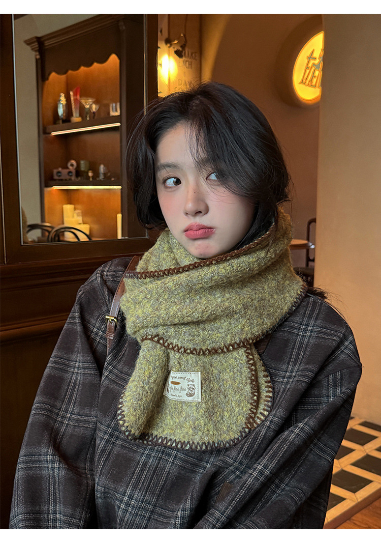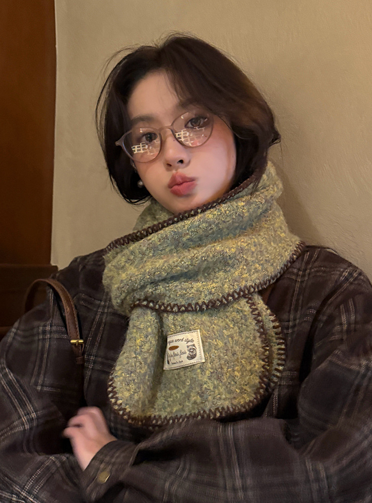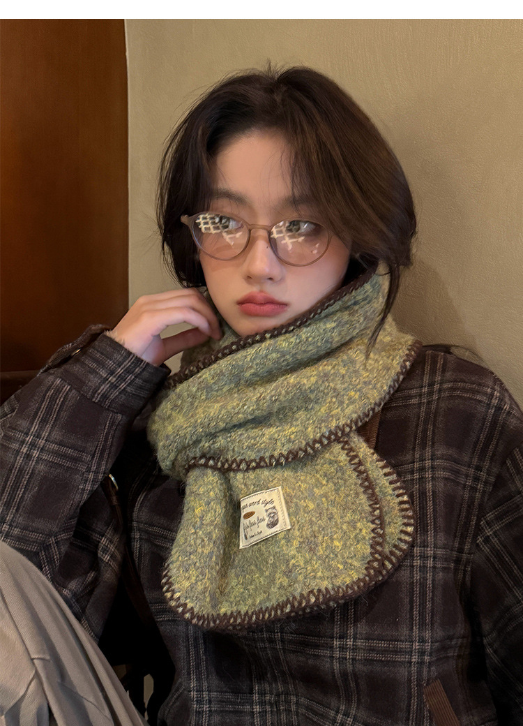 新款韩系复古锁边围巾女羊毛混纺软糯加厚针织保暖百搭秋冬季围脖